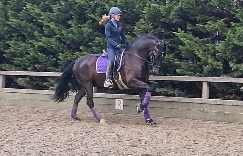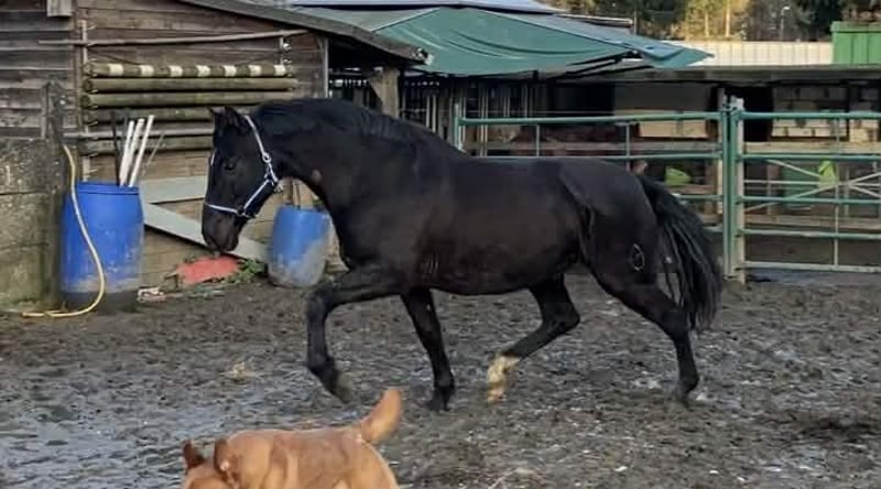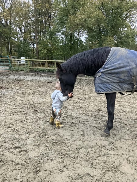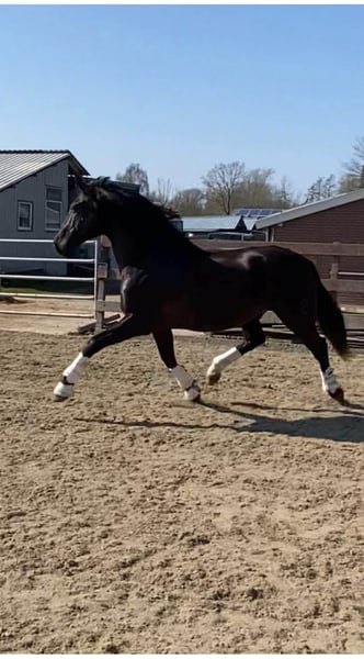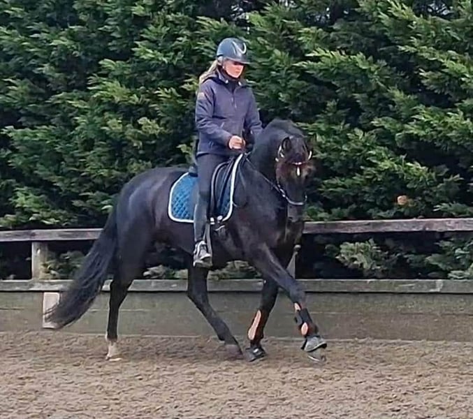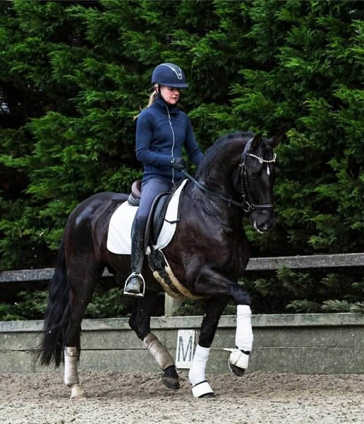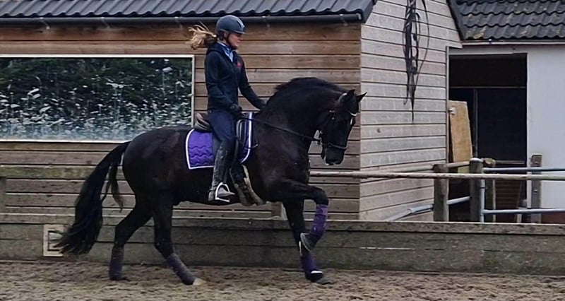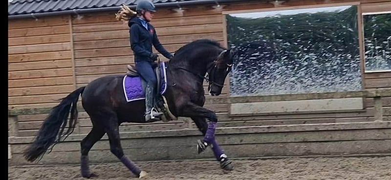 PRE Baroque gelding almost 13 years old! 1m64 Good xRays, can be send Vaccinations (Tetanus, Influenza and Rhino) are up to date Dentist comes every year in December No stable vices, very easy and kind! Very healthy and sound horse This amazing beautiful boy is looking for his new partner in crime. Due to circumstances from the owner it’s sadly they had to make the choice of finding a new partner for him. He knows exercises from the 3th level and flying changes ,but because of 6 months out of work all need to build up again. We are starting his training now for a few weeks and he is climbing back to where he was, that's why he's available at a lower price. He has a super super sweet character it’s a very honest horse. But he's not yet suitable for beginners or insecure riders, he's bred for sport. He has expierence in dressage, working equitation clinics and did a lot of hacks, even in the sea! He has a clean x rays check and is located in Belgium but we can help with Traces and Transport. Bred in Spain by https://yeguadalasnegrillas.com/