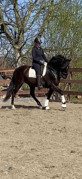 PRE Barock-Gelding, fast 13 Jahre alt 1,64 m Gute Röntgenaufnahmen vorhanden, können versendet werden Aktuelle Impfungen (Tetanus, Influenza und Rhino) Jährlich im Dezember beim Zahnarzt Keine Stallprobleme, sehr ruhig und freundlich Sehr gesund und sound Dieser wunderschöne, liebevolle Wallach sucht einen neuen Partner fürs Leben. Aus persönlichen Gründen des Besitzers ist die Entscheidung gefallen, einen neuen Besitzer für ihn zu suchen. Er kennt Übungen bis zum 3. Niveau und fliegende Wechsel, doch aufgrund von sechs Monaten Pause muss alles wieder aufgebaut werden. Wir beginnen momentan mit seinem Training, und er arbeitet sich in den letzten Wochen wieder dahin zurück, weshalb er zu einem günstigeren Preis angeboten wird. Er hat ein super, sehr freundliches Wesen und ist ein äußerst ehrliches Pferd. Allerdings ist er noch nicht für Anfänger oder unsichere Reiter geeignet, da er für den Sport gezüchtet wurde. Er hat Erfahrung in der Dressur, Working Equitation und hat bereits viele Ausritte gemacht, sogar am Meer! Seine Röntgenuntersuchung ist sauber, er steht in Belgien, aber wir können bei Traces und Transport gerne behilflich sein. Geboren in Spanien bei https://yeguadalasnegrillas.com/