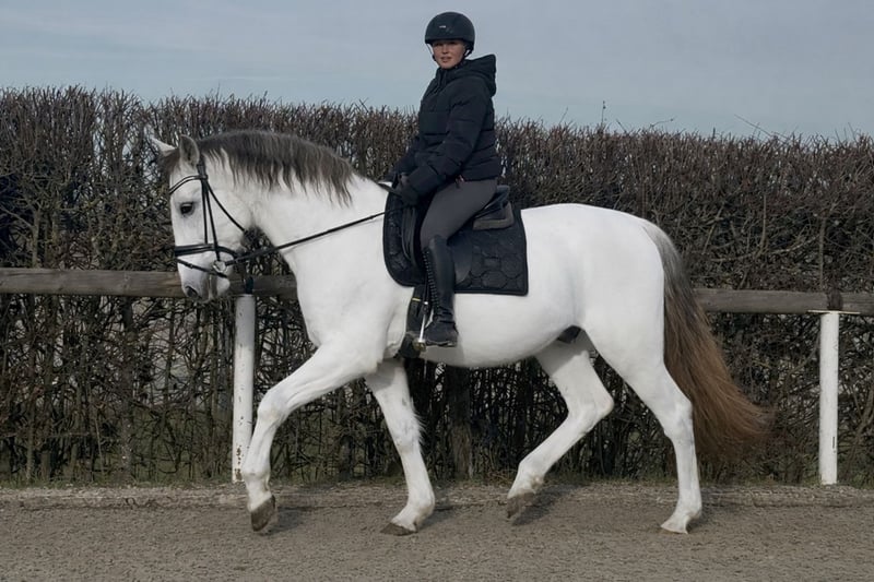 Name: Espartaco VR Rasse: P.R.E Geschlecht: Wallach Geburtsdatum: 09.01.2009 Alter: 17 Stockmaß: 1.60m Farbe: Schimmel Abstammung: mit Abstammungsnachweis Charakter: menschenbezogen, verlässlich, geduldig, neugierig, intelligent Ausbildung/Eignung: geritten, Dressur, Freizeit Geländeerfahrung: zuverlässig, unerschrocken, nervenstark, alleine und in der Gruppe Gesundheit: entwurmt, geimpft, Barhufer, ekzemfrei, Zähne kontrolliert, ostheopatisch behandelt Haltung: Box, Paddock Besonderheiten: sehr sitzbequem, gute Grundgangarten, schmiede und verladefromm, herdenverträglich Die genannten Eigenschaften beruhen auf unserer persönlichen Einschätzung und stellen keine zugesicherten Merkmale dar. Preis: 2900€ (Bruttopreis) Haben wir ihr Interesse geweckt? Um Ihnen einen besseren Eindruck von Espartaco zu geben, senden wir Ihnen sehr gerne sein Reitvideo zu. Selbstverständlich stehen wir Ihnen für eine ausführliche Beschreibung des Pferdes, persönliche Beratung und zur Beantwortung aller Ihrer Fragen auch telefonisch zur Verfügung. Bitte schreiben Sie uns hierfür jederzeit eine WhatsApp Nachricht, oder rufen unter folgender Telefonnummer an: +49 15119487595 Unsere Telefonzeiten sind täglich von 7:00 - 13:30 sowie ab 20:00Uhr. Wir freuen uns über Ihre Kontaktaufnahme! Eine klinische oder Röntgenologische Ankaufsuntersuchung kann gerne vom Tierarzt Ihrer Wahl durchgeführt werden. Natürlich kann Espartaco sicher und komfortabel in sein neues Zuhause geliefert werden. Wir kümmern uns um alle notwendigen Vorbereitungen und den Transport, damit Ihr neues Pferd stressfrei, gut betreut, versichert und wohlbehalten im neuen Zuhause ankommt. Zurzeit präsentieren wir eine sorgfältig ausgewählte Vielfalt an Verkaufspferden. Bei uns finden Sie garantiert Ihr Traumpferd. Besuchen Sie uns auch gerne auf unserer Homepage unter: www.marvinsroyalhorses.de. Sehr geehrte Kunden, gerne stellen wir Ihnen unsere Pferde vor und führen, putzen, satteln, longieren, Bodenarbeit sowie Probereiten in der Reithalle, auf dem Platz oder im Gelände ist Ihnen möglich, um Ihr neues Familienmitglied näher kennenzulernen. Dieses kostet für ein Pferd 40€, für jedes weitere 30€ und wird beim Kauf wieder erstattet. Unsere Adresse lautet: Grube Ferdinand 50 53577 Neustadt Wied Google Maps: marvinsroyalhorses