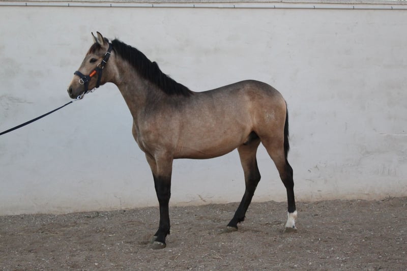 Se vende potro espectacular de 20 meses de edad. Pura raza español, de capa baya del hierro de Paco Martí. Muy noble y de buenos orígenes. Con buenos movimientos ideal para la doma. Carácter equilibrado. Nivel de adiestramiento acorde a su edad. Libre de piro.