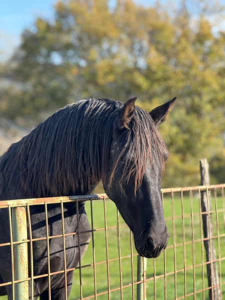2 jaar oude PRE-hengst, bloedlijnen Yeguada Militar en Escalera. Op de laatste foto is zijn merrie te zien. Zijn vader komt uit de Piro-vrije zone. Hij neemt deel aan Grand Prix niveau dressuur.