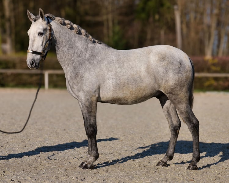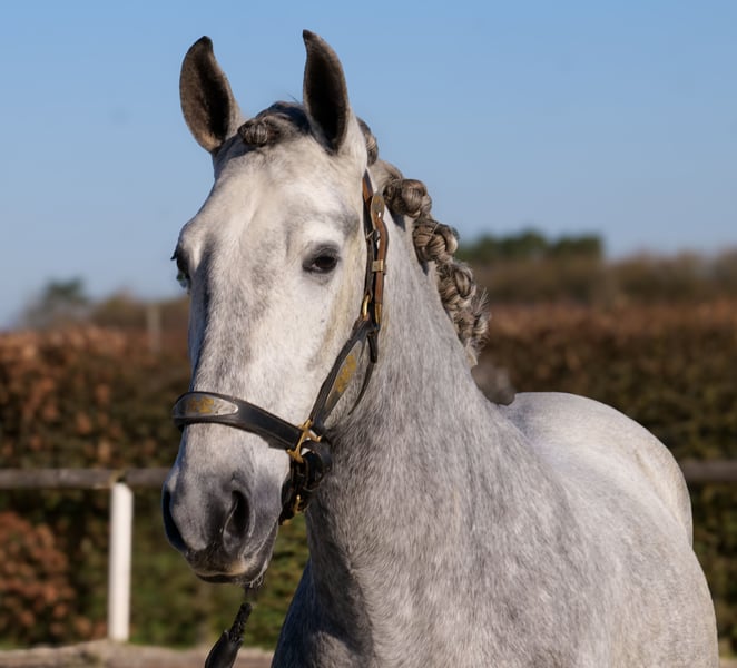 Name: Bravio Segura Rasse: P.R.E Geschlecht: Wallach Geburtsdatum: 28.07.2022 Alter: 4 Stockmaß: 1.53m Farbe: Schimmel Abstammung: mit Abstammungsnachweis Charakter: menschenbezogen, lernwillig, verlässlich, neugierig, intelligent, mutig, gelassen Ausbildung/Eignung: geritten, Freizeit, Dressur, Barock, Working Equitation Geländeerfahrung: zuverlässig, unerschrocken, nervenstark, alleine und in der Gruppe Gesundheit: entwurmt, geimpft, Barhufer, ekzemfrei, Zähne kontrolliert, osteopathisch behandelt Haltung: Box, Paddock Besonderheiten: gute Grundgangarten, sehr sitzbequem, schmiede und verladefromm, herdenverträglich Die genannten Eigenschaften beruhen auf unserer persönlichen Einschätzung und stellen keine zugesicherten Merkmale dar. Preis: 7900€ (Bruttopreis) Haben wir ihr Interesse geweckt? Um Ihnen einen besseren Eindruck von Bravio zu geben, senden wir Ihnen sehr gerne sein Reitvideo zu. Selbstverständlich stehen wir Ihnen für eine ausführliche Beschreibung des Pferdes, persönliche Beratung und zur Beantwortung aller Ihrer Fragen auch telefonisch zur Verfügung. Bitte schreiben Sie uns hierfür jederzeit eine WhatsApp Nachricht, oder rufen unter folgender Telefonnummer an: +49 15119487595 Unsere Telefonzeiten sind täglich von 7:00 - 13:30 sowie ab 20:00Uhr. Wir freuen uns über Ihre Kontaktaufnahme! Eine klinische oder Röntgenologische Ankaufsuntersuchung kann gerne vom Tierarzt Ihrer Wahl durchgeführt werden. Natürlich kann Bravio sicher und komfortabel in sein neues Zuhause geliefert werden. Wir kümmern uns um alle notwendigen Vorbereitungen und den Transport, damit Ihr neues Pferd stressfrei, gut betreut, versichert und wohlbehalten im neuen Zuhause ankommt. Zurzeit präsentieren wir eine sorgfältig ausgewählte Vielfalt an Verkaufspferden. Bei uns finden Sie garantiert Ihr Traumpferd. Besuchen Sie uns auch gerne auf unserer Homepage unter: www.marvinsroyalhorses.de. Sehr geehrte Kunden, gerne stellen wir Ihnen unsere Pferde vor und führen, putzen, satteln, longieren, Bodenarbeit sowie Probereiten in der Reithalle, auf dem Platz oder im Gelände ist Ihnen möglich, um Ihr neues Familienmitglied näher kennenzulernen. Dieses kostet für ein Pferd 40€, für jedes weitere 30€ und wird beim Kauf wieder erstattet. Unsere Adresse lautet: Grube Ferdinand 50 53577 Neustadt Wied Google Maps: marvinsroyalhorses