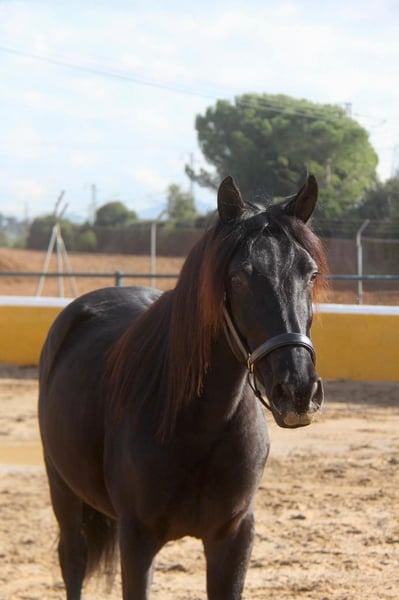 Deze prachtige PRE-ruin zoekt zijn hartsvriend. Qua karakter is hij een zeer lieve, hoffelijke en nieuwsgierige jonge hengst. Hij is 3 jaar oud en momenteel ongeveer 1,54 m hoog. Naar volwassenheid schatten we hem op ongeveer 1,57-1,58 m. Hij komt net uit zijn jongehengstengroep en leert momenteel de basis van het veulengebit, wat hij heel lief doet. In de toekomst kunnen we ons hem voorstellen in veel disciplines, zoals dressuur, working equitation, show of gewoon als vrijetijdspartner. Zijn jeugd heeft hij doorgebracht in een grote groep merries en hun veulens op de wei, en op ongeveer 8 maanden werd hij van zijn moeder gescheiden en kon hij zich uitleven in een jongehengstengroep. Nu is hij op stal, zodat hij ook de box kent. Hij heeft al röntgenfoto's zonder afwijkingen. Locatie: Barcelona, Spanje. Een kennismaking in Spanje en het transport kunnen probleemloos geregeld worden.