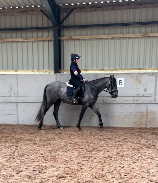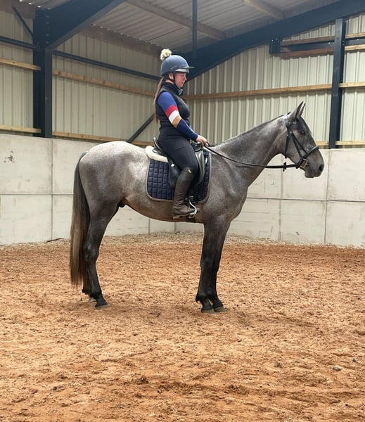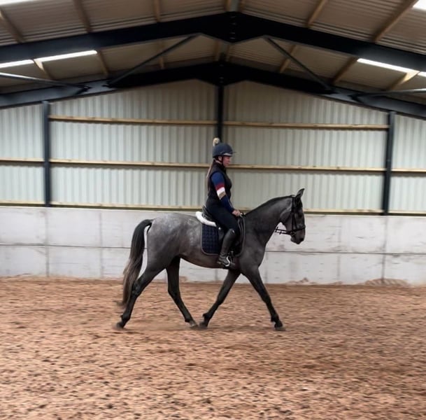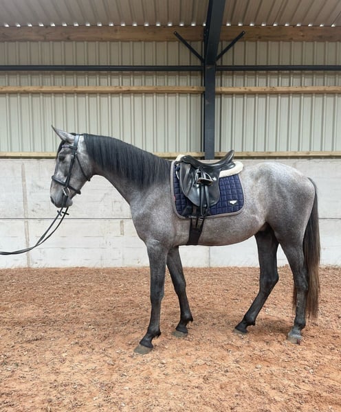 Pure bred ANCCE registered PRE gelding. This young boy will fill out into a 16 hands elegant horse . He has a steady temperament and has already been hacking out in a variety of environments. He can go solo or in a group on hacks. His schooling is going really well and he can be ridden by children or beginners without fear yet he has an exciting forward outlook. He will make a great all round horse and has potential for competition jumping and dressage or simply the most good looking horse in the stables ! All our horses are bred on site and developed by love and care and this is why they have no vices at all. Pronto is out of a very forward PRE mare who has passed on his sharpness in movement. His sire has given him long legs, great posture and a wonderful temperament. He loves to please. He will continue to be schooled every day until he is sold by our professional staff.