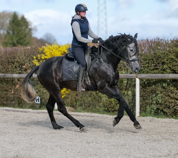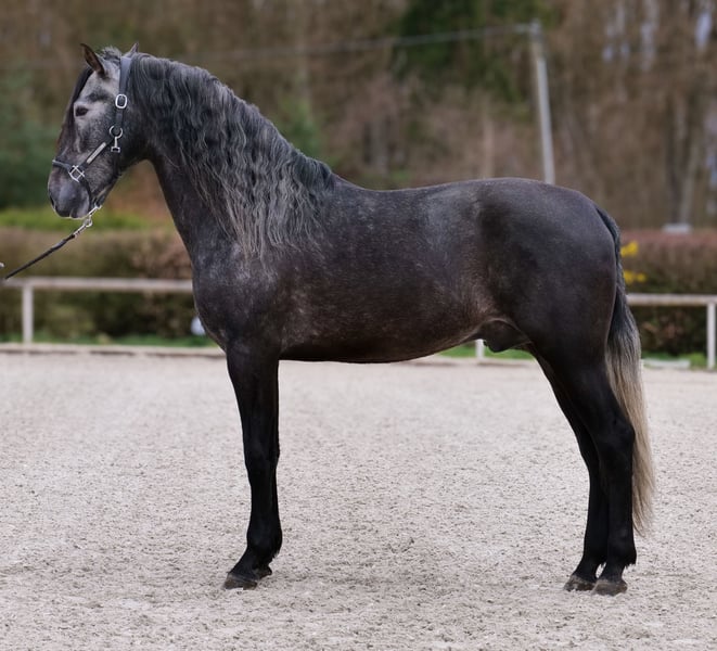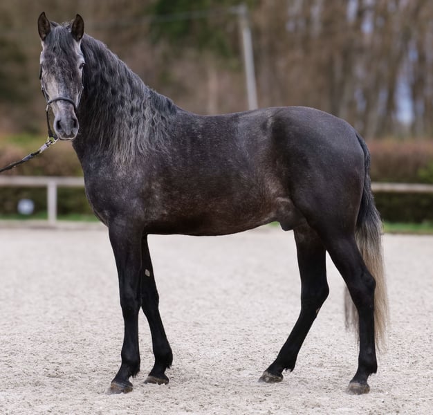 Name: Huracan SS Rasse: P.R.E Geschlecht: Wallach Geburtsdatum: 24.04.2022 Alter: 4 Stockmaß: 1.65m Farbe: Schimmel Abstammung: mit Abstammungsnachweis Charakter: menschenbezogen, lernwillig, verlässlich, neugierig, intelligent, mutig Ausbildung/Eignung: geritten, Dressur, Freizeit, Barock, Working Equitation Geländeerfahrung: zuverlässig, unerschrocken, alleine und in der Gruppe Gesundheit: entwurmt, geimpft, Barhufer, ekzemfrei, Zähne kontrolliert, osteopathisch behandelt Haltung: Box, Paddock Besonderheiten: gute Grundgangarten, sehr sitzbequem, schmiede und verladefromm, herdenverträglich Die genannten Eigenschaften beruhen auf unserer persönlichen Einschätzung und stellen keine zugesicherten Merkmale dar. Preis: 9900€ (Bruttopreis) Haben wir ihr Interesse geweckt? Um Ihnen einen besseren Eindruck von Huracan zu geben, senden wir Ihnen sehr gerne sein Reitvideo zu. Selbstverständlich stehen wir Ihnen für eine ausführliche Beschreibung des Pferdes, persönliche Beratung und zur Beantwortung aller Ihrer Fragen auch telefonisch zur Verfügung. Bitte schreiben Sie uns hierfür jederzeit eine WhatsApp Nachricht, oder rufen unter folgender Telefonnummer an: +49 15119487595 Unsere Telefonzeiten sind täglich von 7:00 - 13:30 sowie ab 20:00Uhr. Wir freuen uns über Ihre Kontaktaufnahme! Eine klinische oder Röntgenologische Ankaufsuntersuchung kann gerne vom Tierarzt Ihrer Wahl durchgeführt werden. Natürlich kann Huracan sicher und komfortabel in sein neues Zuhause geliefert werden. Wir kümmern uns um alle notwendigen Vorbereitungen und den Transport, damit Ihr neues Pferd stressfrei, gut betreut, versichert und wohlbehalten im neuen Zuhause ankommt. Zurzeit präsentieren wir eine sorgfältig ausgewählte Vielfalt an Verkaufspferden. Bei uns finden Sie garantiert Ihr Traumpferd. Besuchen Sie uns auch gerne auf unserer Homepage unter: www.marvinsroyalhorses.de. Sehr geehrte Kunden, gerne stellen wir Ihnen unsere Pferde vor und führen, putzen, satteln, longieren, Bodenarbeit sowie Probereiten in der Reithalle, auf dem Platz oder im Gelände ist Ihnen möglich, um Ihr neues Familienmitglied näher kennenzulernen. Dieses kostet für ein Pferd 40€, für jedes weitere 30€ und wird beim Kauf wieder erstattet. Unsere Adresse lautet: Grube Ferdinand 50 53577 Neustadt Wied Google Maps: marvinsroyalhorses