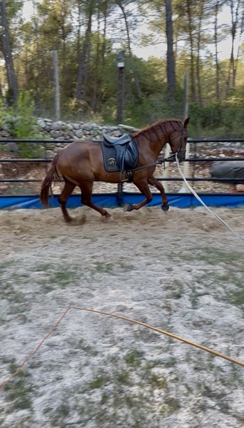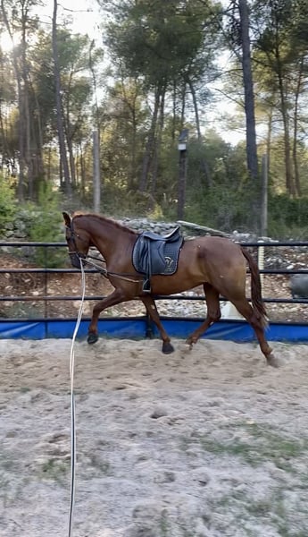 For sale: PRE (Pura Raza Española) gelding, chestnut, born September 15, 2022. Healthy, well-balanced young horse with a confident temperament, progressing well in all three gaits: walk, trot, and canter. He stands out for his excellent aptitude, correct conformation, and good size (approximately 1.65 m / 16.1 hh), making him suitable for any equestrian discipline. Full transparency is guaranteed, with the option for a visit and veterinary examination by any veterinarian of the buyer’s choice. 📞 Contact: - Spanish: Luis - English / Spanish: Sergio More information, photos, or videos available upon request.