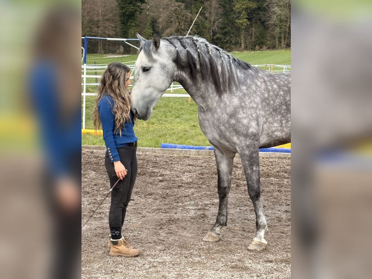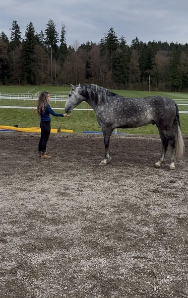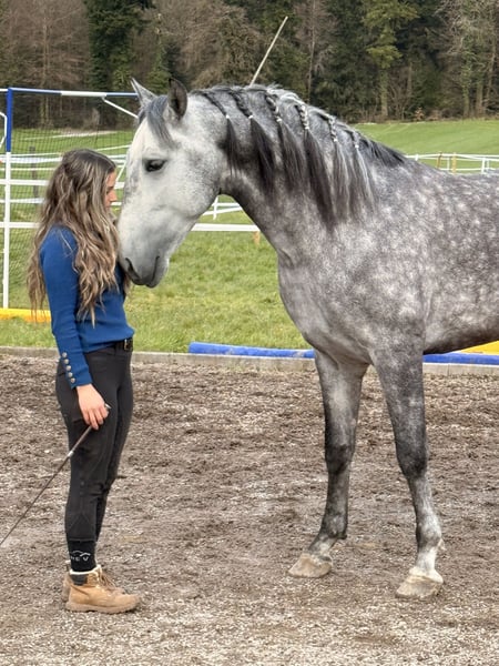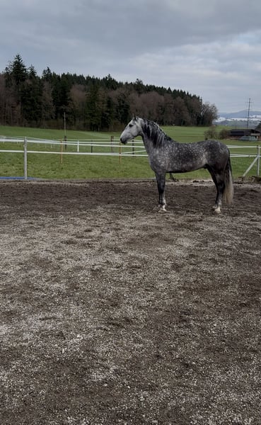 Zum Verkauf steht ein äusserst sympathischer und eleganter PRE Wallach mit einem Stockmaß von 1.54 m. Momo überzeugt durch seine schönen, schwungvollen Gänge und seine natürliche Ausstrahlung. Er ist sehr menschenbezogen, brav im Umgang und zeigt auch in der Freiarbeit grosses Potenzial. Durch seinen freundlichen Charakter ist er für jeden Spass zu haben. Er hat eine gute Grundausbildung und ist geländeerfahren. Der Wallach wurde bereits von einem 9-jährigen Mädchen geritten und zeigt sich dabei stets ausgeglichen und kooperativ – ideal auch als Familienpferd. Ist super lieb auch mit schwächeren Reitern. Ein tolles Pferd mit viel Potenzial und einem liebenswerten Wesen. Bei Interesse freuen wir uns über Ihre Nachricht!