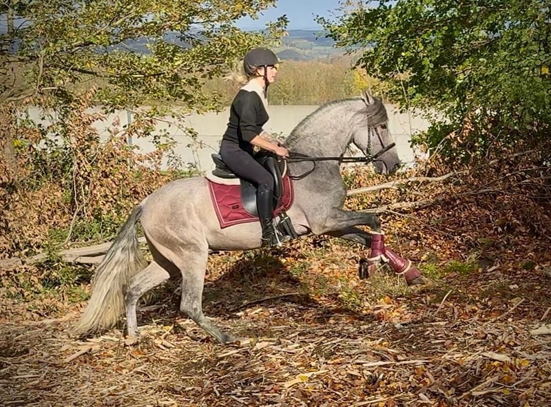 Name: Tunante De Joca Breed: P.R.E. (Pure Spanish Horse) Gender: Gelding Date of Birth: March 19, 2021 Age: 4 years Height: 15.5 hh (approx. 1.55 m) Color: Grey (Dapple Grey) Pedigree: Available Temperament: People-oriented, eager to learn, reliable, curious, intelligent Training/Suitability: Under saddle, leisure riding, dressage, working equitation Trail Experience: Trustworthy, brave, comfortable alone or in a group Health: Dewormed, vaccinated, barefoot, eczema-free, teeth checked, osteopathically treated Stabling: Box stall, open stable Special Features: Very comfortable rider, stands well for farrier and loading, herd-friendly The above characteristics are based on our personal assessment and do not constitute guaranteed traits. Price: €6,900 (gross price) Have we sparked your interest? To give you a better impression of Tunante, we are happy to send you a riding video. Of course, we are available for a detailed description of the horse, personal consultation, and to answer all your questions via phone. Please feel free to contact us anytime via WhatsApp or call us at: +49 151 19487595 Our phone hours are daily from 7:00 AM to 1:30 PM and again from 8:00 PM. We look forward to hearing from you! A clinical or radiological pre-purchase examination can be arranged with your veterinarian. Tunante can be safely and comfortably delivered to his new home. We handle all necessary preparations and transportation so that your new horse arrives stress-free, well cared for, insured, and in good health. Currently, we offer a carefully selected variety of horses for sale. With us, you are sure to find your dream horse. Feel free to visit our website at: www.marvinsroyalhorses.de. Dear customers, we are happy to introduce you to our horses and offer opportunities for grooming, tacking, lunging, ground work, and trial riding in the riding hall, on the arena, or in the field to get to know your new family member better. The cost is €40 for one horse and €30 for each additional horse, which will be refunded upon purchase. Our address: Ferdinand Grube 50 53577 Neustadt-Wied Google Maps: marvinsroyalhorses