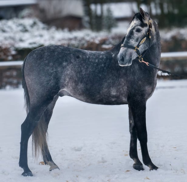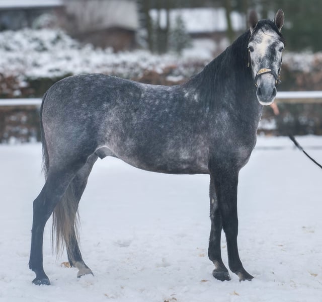Name: Keiro EP Rasse: P.R.E Geschlecht: Wallach Geburtsdatum: 21.02.2021 Alter: 5 Stockmaß: 1.55m Farbe: Blauschimmel Abstammung: mit Abstammungsnachweis Charakter: menschenbezogen, verlässlich, geduldig, neugierig, intelligent, mutig, gelassen Ausbildung/Eignung: geritten, Freizeit, Dressur, Barock, Working Equitataion Geländeerfahrung: zuverlässig, unerschrocken, nervenstark, alleine und in der Gruppe Gesundheit: entwurmt, geimpft, Barhufer, ekzemfrei, Zähne kontrolliert, ostheopatisch behandelt Haltung: Box, Paddock Besonderheiten: sehr sitzbequem, gute Grundgangarten, schmiede und verladefromm, herdenverträglich Die genannten Eigenschaften beruhen auf unserer persönlichen Einschätzung und stellen keine zugesicherten Merkmale dar. Preis: 8900€ (Bruttopreis) Haben wir ihr Interesse geweckt? Um Ihnen einen besseren Eindruck von Keiro zu geben, senden wir Ihnen sehr gerne sein Reitvideo zu. Selbstverständlich stehen wir Ihnen für eine ausführliche Beschreibung des Pferdes, persönliche Beratung und zur Beantwortung aller Ihrer Fragen auch telefonisch zur Verfügung. Bitte schreiben Sie uns hierfür jederzeit eine WhatsApp Nachricht, oder rufen unter folgender Telefonnummer an: +49 15119487595 Unsere Telefonzeiten sind täglich von 7:00 - 13:30 sowie ab 20:00Uhr. Wir freuen uns über Ihre Kontaktaufnahme! Eine klinische oder Röntgenologische Ankaufsuntersuchung kann gerne vom Tierarzt Ihrer Wahl durchgeführt werden. Natürlich kann Keiro sicher und komfortabel in sein neues Zuhause geliefert werden. Wir kümmern uns um alle notwendigen Vorbereitungen und den Transport, damit Ihr neues Pferd stressfrei, gut betreut, versichert und wohlbehalten im neuen Zuhause ankommt. Zurzeit präsentieren wir eine sorgfältig ausgewählte Vielfalt an Verkaufspferden. Bei uns finden Sie garantiert Ihr Traumpferd. Besuchen Sie uns auch gerne auf unserer Homepage unter: www.marvinsroyalhorses.de. Sehr geehrte Kunden, gerne stellen wir Ihnen unsere Pferde vor und führen, putzen, satteln, longieren, Bodenarbeit sowie Probereiten in der Reithalle, auf dem Platz oder im Gelände ist Ihnen möglich, um Ihr neues Familienmitglied näher kennenzulernen. Dieses kostet für ein Pferd 40€, für jedes weitere 30€ und wird beim Kauf wieder erstattet. Unsere Adresse lautet: Grube Ferdinand 50 53577 Neustadt Wied Google Maps: marvinsroyalhorses