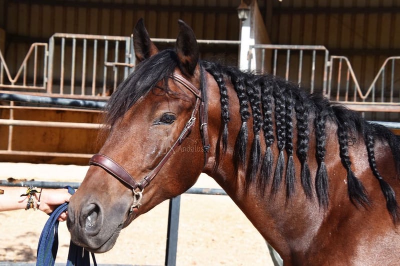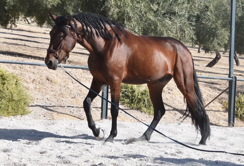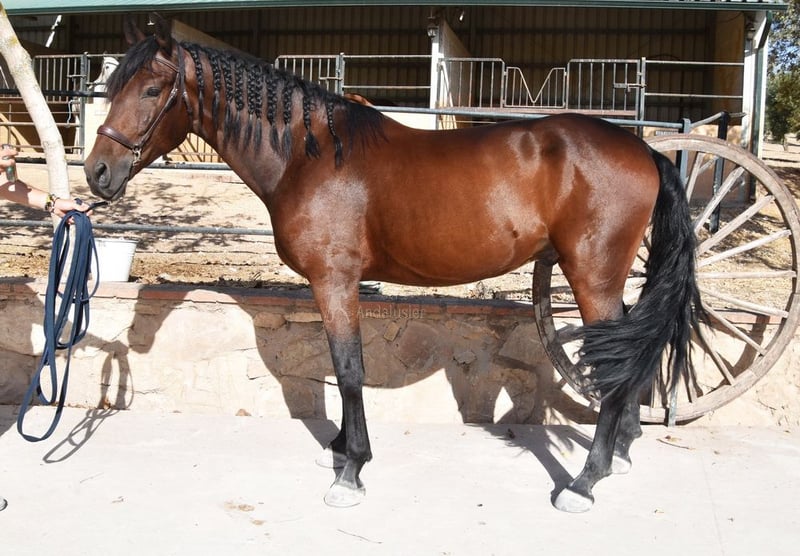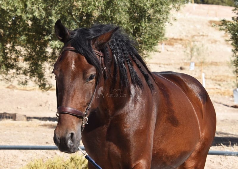 Caractère doux avec un tempérament agréable, curieux, affectueux, monté aux trois allures de base, un peu de latéralité, saute, en extérieur, grand, bons mouvements et origine, convient aux cavaliers peu expérimentés, origine : Pedro Maza Iñiguez, Yeguada Militar, Yeguada Puerta Alta, arrière-grands-pères Obcecado et Femento sont qualifiés. www.elegante-andalusier.com