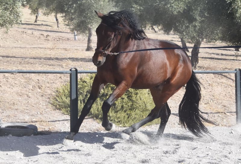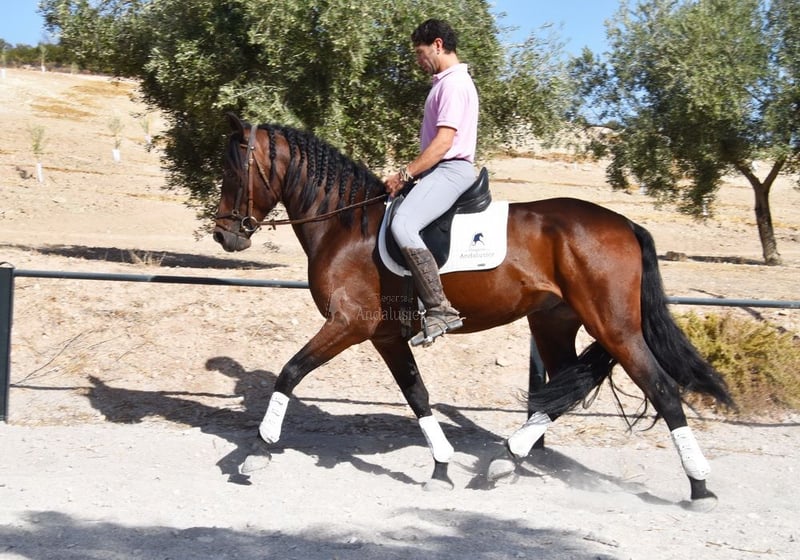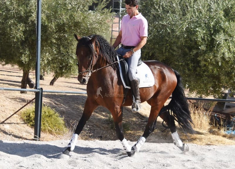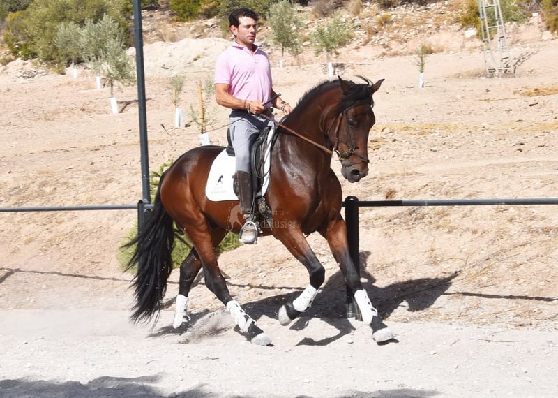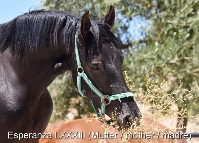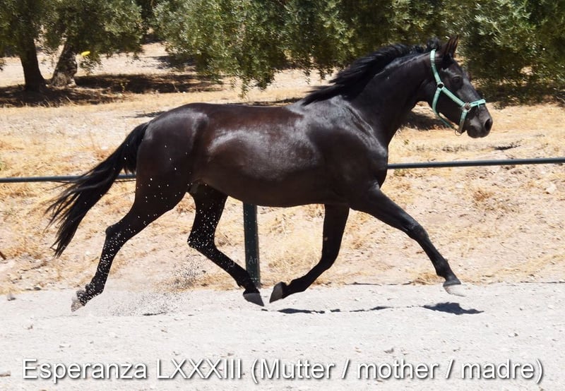 dear character with a pleasant temperament, curious, affectionate, ridden in the basic gaits, some lateral movements, jumps, trail riding, tall, good movements and lineage, suitable for novice riders, lineage: Pedro Maza Iñiguez, Yeguada Militar, Yeguada Puerta Alta, great-grandfathers Obcecado and Femento are qualified www.elegante-andalusier.com