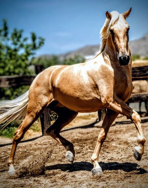Este hermoso caballo de color dorado busca un hogar definitivo 🏡 Posee un carácter maravilloso, muy, muy dócil, por lo que, a pesar de su juventud, es adecuado tanto para jinetes principiantes, como para reincidentes, jinetes temerosos y novatos. Está acostumbrado a ser montado principalmente en campo abierto. También en el picadero es excepcionalmente tranquilo, muy fácil de montar y completamente confiable. Gracias a su carácter suave, incluso niños sin experiencia ecuestre pueden montarlo. Tiene un trote absolutamente tranquilo y muy cómodo para el jinete. Su galope también es calmado, regular y ya en buena forma. Se ha comenzado con la técnica de paso y pié de galope. Es muy atento a su jinete y muestra buena disposición para el trabajo. Con sus excelentes movimientos, puede incluso dedicarse a la doma clásica. ‼️ Disponemos de varios palominos, así como de otros colores especiales como buckskin, champagne, perlino, etc....‼️‼️ No tiene ninguna mala costumbre. Si estás interesado o deseas más información, no dudes en contactarme. ‼️Por favor, incluye tu número de teléfono para que pueda ponerme en contacto contigo lo antes posible‼️ Las visitas y pruebas de monta se pueden concertar con cita previa. Nos encargamos de organizar el transporte con mucho gusto 🚛