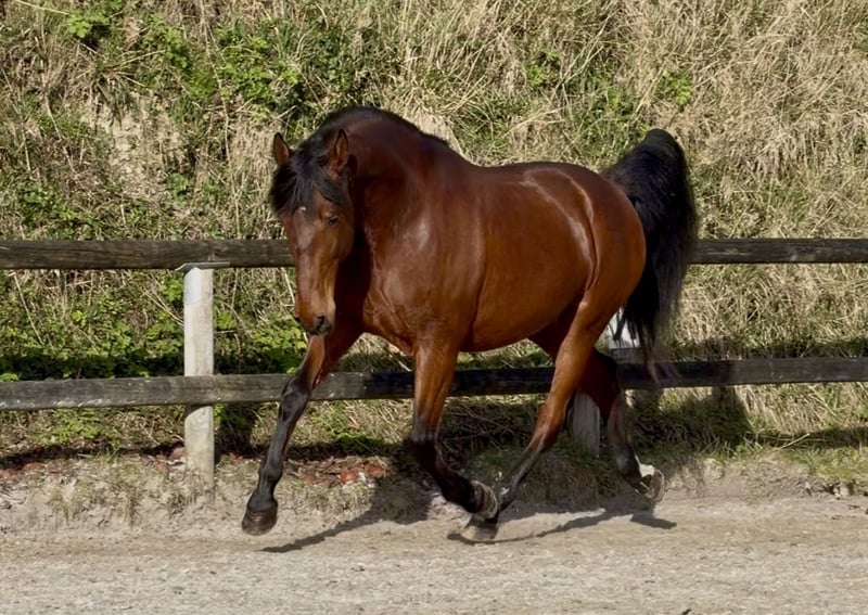 À vendre : PRE hongre, né en 2021, de couleur bai cerise, mesurant environ 170 cm. Ce magnifique jeune cheval allie élégance et potentiel, idéal pour un cavalier ou un cavalier en devenir cherchant un compagnon fiable et bien éduqué. Son excellent tempérament et sa conformation harmonieuse en font un choix parfait pour progresser dans la discipline du dressage. Il est un compagnon fidèle pour vos promenades. De part son jeune âge, il ne s'adresse pas à un cavalier débutant. Très proche de l'humain, il adore que l'on s'occupe de lui. Acheté à 6 mois en Espagne, il a grandi dans nos herbages normands. N'hésitez pas à nous contacter pour plus d'informations ou organiser une visite.