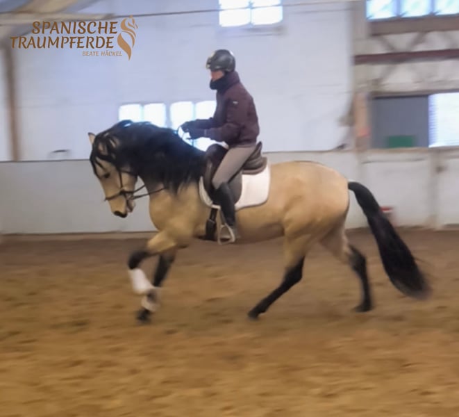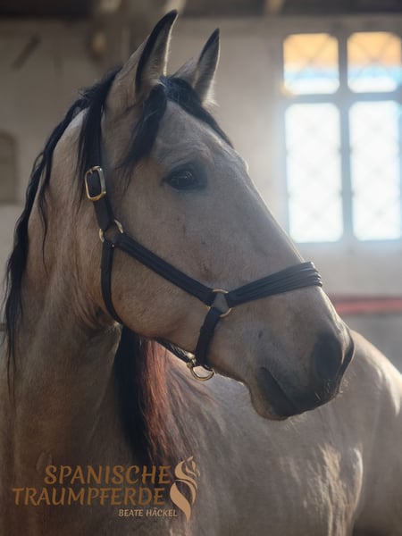 Was für ein zauberhaftes Pferd!!! Unser fünfjähriger PRE-Falbwallach ✨ROLEX SH✨ ist ein ganz wundervolles Pferd und seinem Namen zurecht, ein exklusiver Vertreter seiner Art. Dieses Pferd ist im Umgang ein wahrer Schatz😍, unter dem Reiter sehr leichtrittig und angenehm weich zu sitzen. Ganz besonders ist seine Großrahmigkeit. Für die Liebhaber des etwas größeren spanischen Pferdes ist ROLEX SH mit seinem derzeitigen Stockmaß von 171cm das ideale Pferd. Dazu kommt sein traumhafter Behang und seine wundervolle Sonderlackierung. Alles in allem ein spanischer Traum auf vier Beinen. Röntgenbilder liegen vor. Standort: 23795 Traventhal Ein Kennenlernen unseres ROLEX ist nach Terminabsprache nahezu jederzeit möglich. Für diesen Termin nehmen wir zum Schutz unserer Pferde eine Pauschale von 50,-