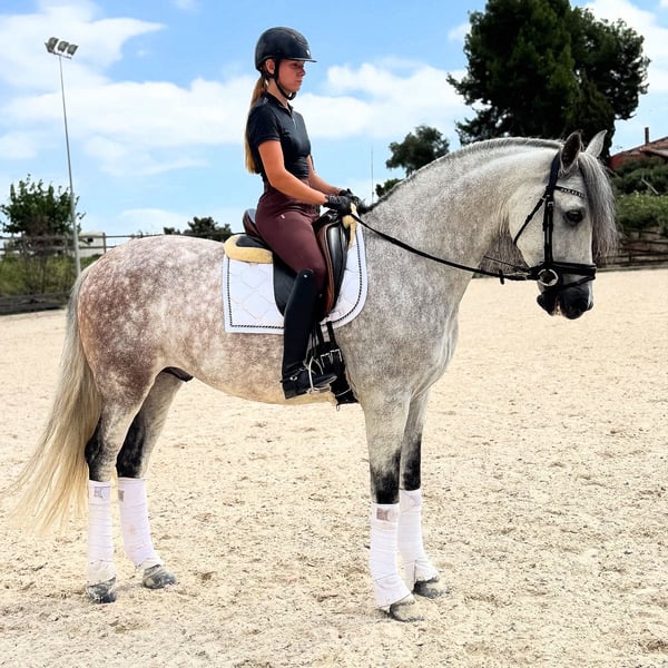 Lovely & sweet horse PRE gelding ideal for all the family, very well educated in all senses and is perfect for people who want a pretty and safe horse to enjoy. Working great on lateral work, half passes, counter canter. Has clean x-rays on file. Size 1.63 meters.