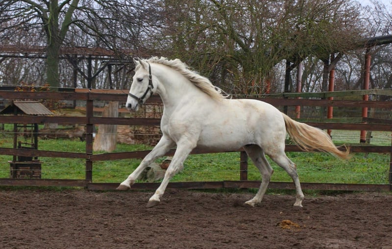 **Sale ad: Elegant PRE stallion for sale** We are offering an impressive PRE stallion for sale who impresses with his elegance and dressage potential. - Breed:** Pura Raza Española (PRE) - Sex:** Stallion - Year of birth:** 2020 - **Color:** Grey - Height:** 163 cm - **Discipline:** Dressage This young gray stallion not only impresses with his appealing appearance, but also with his excellent dressage qualities. With his harmonious conformation and ground covering movements, he is a real eye-catcher in the arena. His friendly nature and willingness to learn make him an ideal partner for ambitious riders looking for a reliable and talented young dressage horse. Lunged according to age so far. For further information or to arrange a viewing appointment, please do not hesitate to contact us.