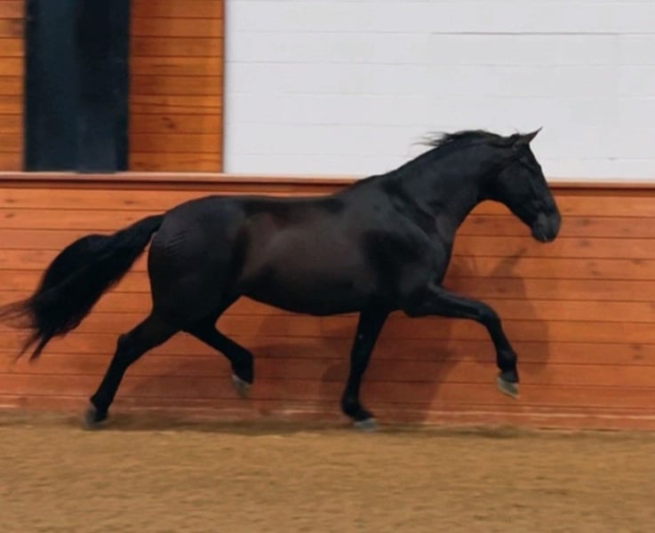 DRESSAGE IBERIANS Prezentuje.... Diligente: 2020 importowany czarny wałach PRE, oszałamiające klasycznie wykształcone piękno! Importowany z Hiszpanii i w klasycznym treningu, to łagodne piękno pochodzi od wspaniałego hodowcy w Hiszpanii, Yeguada Llorente. Ma nieco ponad 16HH, jest pod siodłem i świetnie radzi sobie na lonży z piaffem, hiszpańskim krokiem, ukłonem, piruetem. Jego trener ma dla niego same pochwały i podkreśla jego ogromną osobowość przypominającą pluszowego misia. Jest dobrze zbudowany, ma mocny grzbiet, jest kwadratowej budowy, naturalnie zebrany i bardzo wzniesiony. Jest przyjazny dla amatorów, ale tylko dla doświadczonego jeźdźca w programie treningowym, który lubi energiczne konie, ponieważ jest niestrudzony i uwielbia pracować! To ikoniczne piękno ma ogromny potencjał i będzie się wyróżniać stylem - idealnie nadaje się do klasycznej ujeżdżenia, pracy na lonży, pokazów wolnościowych i equitacji roboczej. Spełnienie marzeń dla bardzo szczęśliwej osoby. Aby dokładniej ocenić go jako potencjalnego partnera, skontaktuj się z nami, aby uzyskać więcej informacji na temat jego linii krwi, treningu i usposobienia. LINK DO FILMU na naszej stronie internetowej lub kanale youtube. Wideo z jazdy wkrótce dostępne. FB - Susan Andalusian Zlokalizowany w pobliżu Aten i Atlanty, GA.