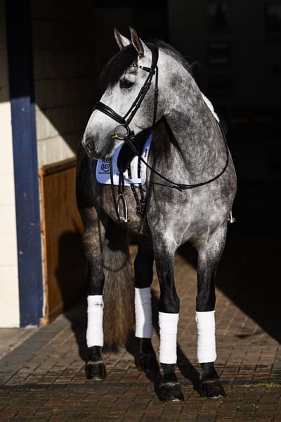 Paolo is een 10-jarige PRE-merrie met een hoogte van 1,56 m en zeer goede basisgangen. Helaas moet ik vanwege persoonlijke omstandigheden afscheid van hem nemen. Paolo is een bijzonder paard. Hij is niet geschikt voor beginners of als kinderpony. Hij kan niet goed omgaan met stressvolle situaties en hectische bewegingen. Hij heeft een rustige ruiter nodig die hem de nodige veiligheid, rust en vertrouwen kan geven. Vereisten zijn een stevige zit en een kalme, evenwichtige rijstijl. Als je eenmaal een klik met hem hebt, werkt hij goed mee. Ik zoek iemand voor hem die hem de tijd geeft die hij nodig heeft. Om hem als teamgenoot te winnen en vertrouwen op te bouwen, is grondwerk essentieel. Ervaring in deze discipline zou een voordeel zijn. Hij vertrouwt de mens meer vanaf de grond dan wanneer de ruiter erop zit. Hij staat overdag op de wei en ’s nachts in een paddockbox; ik wens dat deze huisvesting ook in de toekomst voor hem behouden blijft. Hij wordt veelzijdig gereden: grondwerk, dressuur, springen of buitenritten. Hij gaat zowel solo als in een groepje het terrein in. Hij heeft al met veel plezier ervaring opgedaan op een crossbaan. Dressuurmatig is hij op niveau A, met beginnetjes van L-klassiekers. Hij vindt het geweldig om met cavaletti te werken en maakt ook mooie sprongen. Hij bevindt zich momenteel op E-niveau, met enkele sprongen op A-niveau. Graag zou ik vooraf telefonisch contact willen om een beter beeld te krijgen en kennis te maken.