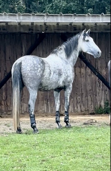 Zum Verkauf steht ein 6-jähriger Wallach, 1,65 m groß, reinrassiger spanischer Hengst mit sehr guten Abstammungen. Er wurde bei La Cense eingeritten und wird seit seinem zweiten Lebensjahr von einer Fachfrau für ethologische Reitweisen betreut. Sein Charakter ist äußerst liebenswert. Er geht alleine oder in Gesellschaft ins Gelände, arbeitet am Boden und an der Longe. Im Dressurarbeit ist er noch etwas grün, zeigt aber großes Lernpotenzial. Er lebt auf der Weide mit drei weiteren Pferden.