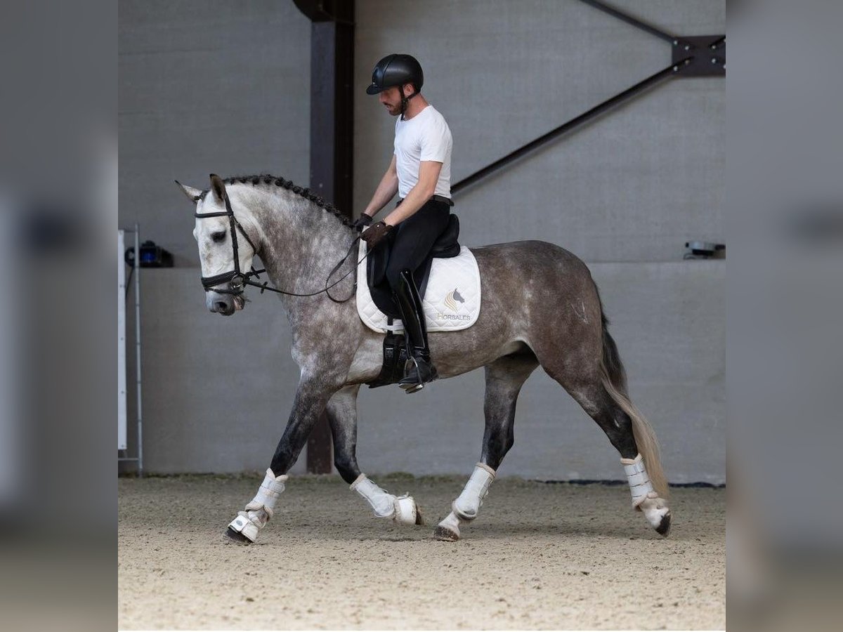 Wir präsentieren ein elegantes, barock anmutendes Pferd, geboren im Jahr 2020, mit einer Größe von 1,67 m. Es besticht durch seine Schönheit, morphologische Harmonie und Funktionalität. Dieses Pferd ist ideal für erfahrene Freizeitreiter, die nach einem zuverlässigen Begleiter mit qualitativem Bewegungspotenzial suchen. In Bezug auf die Arbeit unter dem Sattel reagiert es korrekt und deutlich auf die Hilfen und zeigt eine kooperative sowie ausgeglichene Einstellung. Derzeit arbeitet es an fortgeschrittenen Dressurlektionen, führt Piaffen, Pirouetten und Seitengänge geschmeidig aus, was es zu einem vielseitigen und äußerst attraktiven Pferd macht – perfekt für Reiter, die Freizeitreiten mit technischem Anspruch verbinden möchten. Sein Charakter ist edel und gut zu handhaben, was die tägliche Arbeit und das Reiten im Viereck erleichtert und angenehm macht. Seine barocke Erscheinung verleiht Präsenz und Eleganz – Eigenschaften, die bei dieser Pferderasse sehr geschätzt werden – und sorgt gleichzeitig für ein angenehmes und komfortables Reiterlebnis. Dieses Pferd ist eine ausgezeichnete Wahl für alle, die ein schönes, funktionales und sicheres Pferd suchen, mit dem man auf einem anspruchsvollen Niveau reiten kann, das aber auch für einen erfahrenen Enthusiasten gut zugänglich ist.