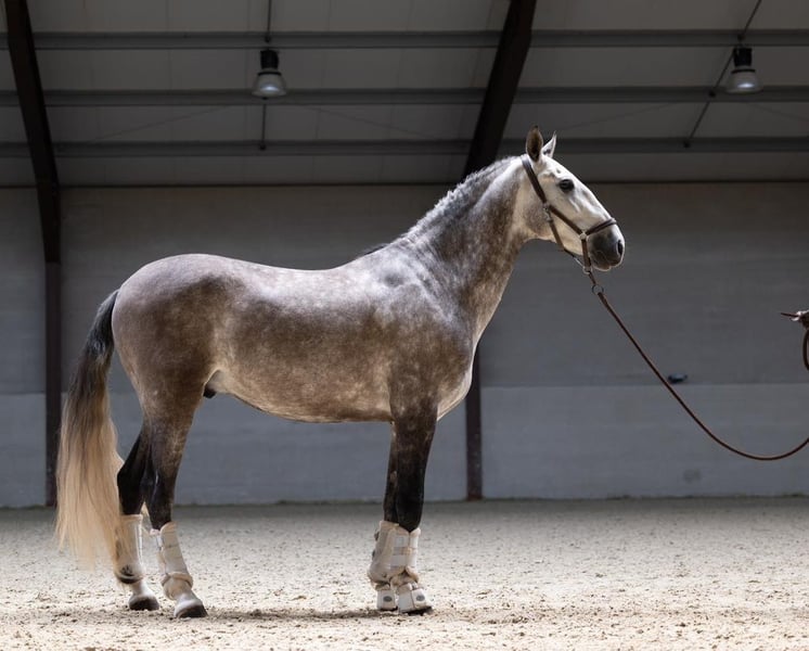 Wij presenteren een elegante, barokke uitstraling paard, geboren in 2020 en met een hoogte van 167 cm. Hij valt op door zijn schoonheid, morfologische harmonie en functionaliteit. Dit is een ideaal paard voor ervaren amateurruiters die op zoek zijn naar een betrouwbare metgezel met kwaliteitsvolle bewegingen. Wat betreft zijn training onder het zadel, reageert hij correct en duidelijk op hulpteugels en toont hij een coöperatieve en evenwichtige houding. Hij werkt momenteel aan gevorderde dressuuroefeningen, voert piaffes, pirouettes en supports soepel uit, waardoor hij een veelzijdig en zeer aantrekkelijk paard is voor wie recreatief wil rijden met extra technische vaardigheid. Zijn karakter is nobel en goed te hanteren, waardoor hij gemakkelijk te rijden is, zowel in de omgang als in de arena. Zijn barokke bouw geeft hem uitstraling en elegantie, zeer gewaardeerde eigenschappen bij dit type paard, terwijl hij comfortabel en plezierig is om op te rijden. Dit paard is een uitstekende keuze voor wie op zoek is naar een mooi, functioneel en betrouwbaar paard, waarmee men op een uitdagend niveau kan rijden, maar dat ook toegankelijk is voor een ervaren liefhebber.