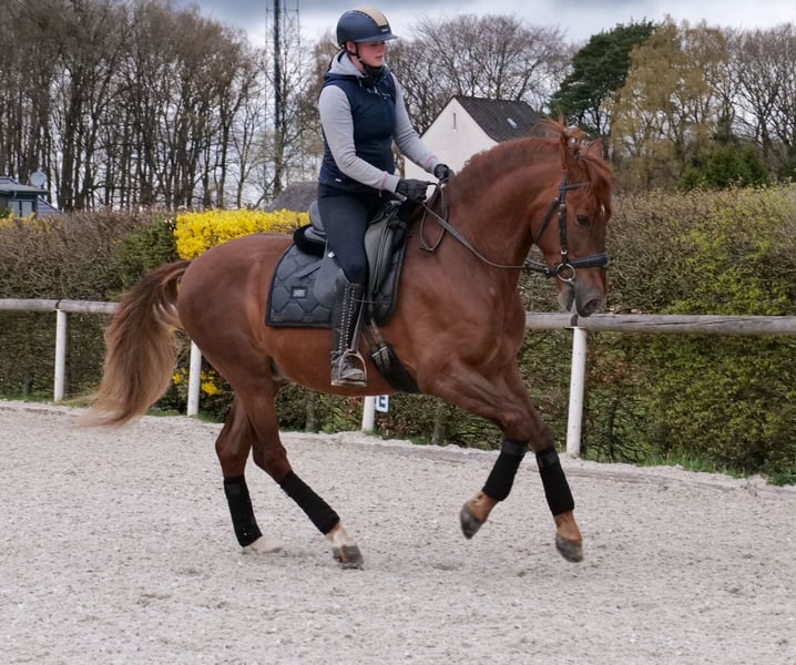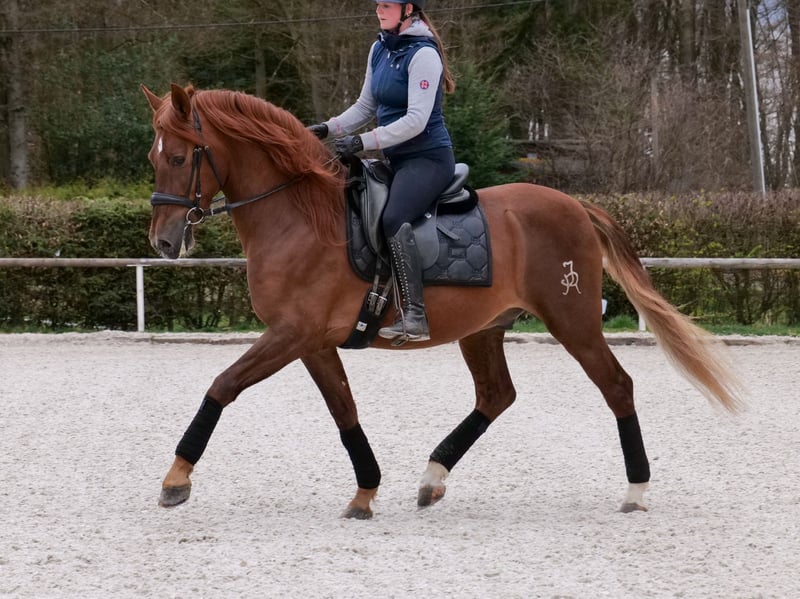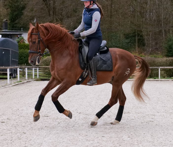 Name: Duque JR III Breed: P.R.E. (Purebred Spanish Horse) Gender: Gelding Date of Birth: April 5, 2019 Age: 7 years Height: 1.60 m (approximately 16.1 hh) Color: Chestnut Pedigree: with pedigree documentation Temperament: personable, eager to learn, reliable, curious, intelligent, brave Training/Suitability: ridden, dressage, leisure riding, baroque riding, working equitation Trail Experience: confident, fearless, experienced both alone and in a group Health: dewormed, vaccinated, barefoot, eczema-free, teeth checked, osteopathically treated Stabling: box stall, paddock Special Features: good basic gaits, very comfortable rider seat, farrier and loading confident, herd-compatible Please note that the above characteristics are based on our personal assessment and do not constitute guaranteed features. Price: €8,900 (gross price) Have we piqued your interest? To give you a better impression of Duque, we are happy to send you a riding video. Of course, we are available for a detailed description of the horse, personal consultation, and to answer all your questions by phone. Feel free to contact us anytime via WhatsApp or call us at: +49 151 19487595 Our phone hours are daily from 7:00 AM to 1:30 PM and again from 8:00 PM. We look forward to hearing from you! A clinical or radiological pre-purchase examination can be performed by your veterinarian of choice. Duque can be safely and comfortably delivered to his new home. We take care of all necessary preparations and transportation so that your new horse arrives stress-free, well cared for, insured, and in good health. Currently, we offer a carefully selected range of horses for sale. With us, you are sure to find your dream horse. Visit us also on our website: www.marvinsroyalhorses.de. Dear customers, we are happy to introduce you to our horses and offer grooming, tacking, lunging, ground work, and trial riding in the riding hall, on the arena, or in the field to get to know your new family member better. The fee is €40 per horse, with each additional horse €30, and will be refunded upon purchase. Our address: Ferdinand Grube 50 53577 Neustadt-Wied Google Maps: marvinsroyalhorses