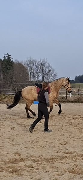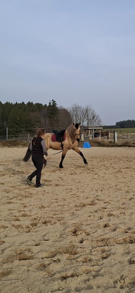 Zum Verkauf steht der 7-jährige PRE Wallach "Camaro". Er ist ca. 1,63 m groß, korrekt gebaut, hat eine sehr gute Galoppade und ist menschenbezogen. Im Umgang ist er brav, ist schmiede- und verladefromm. Derzeit ist er barhuf. Er befindet sich aktuell seit 2 Monaten bei mir in Ausbildung, da er zuvor leider schlechte Erfahrungen beim Reiten gesammelt hat und hierdurch beim Reiten unter Stress steht. KEIN Bocken. Er ist ein sehr sensibles und gleichzeitig dominantes Pferd, was ihn, gepaart mit seinen Vorerfahrungen, definitiv zu KEINEM ANFÄNGERPFERD macht. Mittlerweile geht er wieder Schritt und Trab unter dem Sattel in der Halle und auf dem Platz und geht alleine ins Gelände. Wir würden uns einen erfahrenen, feinfühligen Menschen für ihn wünschen, welcher mit Ruhe und Zeit weiterhin an seinen Themen arbeiten kann. Gerne kann er alternativ auch zur weiteren Ausbildung bleiben. Ich freue mich über ernstgemeinte Anfragen mit einer kurzen Vorstellung. Besichtigung gerne möglich nach Absprache (40€). Standort bei 87435 Kempten.