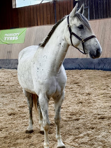 🐎 Arista – Spanish Grey Gelding, 6 Years Old – A Diamond in the Rough with Heart and Mind Arista is a stunning 6-year-old Spaniard who captivates with his presence and genuine nature. He is still in training and is looking for a person who will continue to develop him with patience, experience, and passion. 💫 Character & Training Potential Arista consistently shows motivation, eagerness to learn, and effort in daily work. Whether lunging, groundwork, or desensitization exercises, he approaches new tasks with curiosity and dedication. He is a diamond in the rough, ready to be refined with love and sensitivity. ❤️ What Arista Needs • An experienced horse person with calmness, confidence, and a big heart for Spaniards • No beginners or reintegration riders – Arista requires ongoing development and training • Someone who will not only ride him but grow with him 🏡 Housing & Environment • Box stall with paddock and daily turnout • Socially compatible, low in the herd hierarchy • Familiar with dogs, wheel loaders, and tractors • Always displays a positive attitude towards work • Excellent movement quality 💶 Trial Ride €30 – to be credited upon purchase. Please only serious and suitable inquiries.
