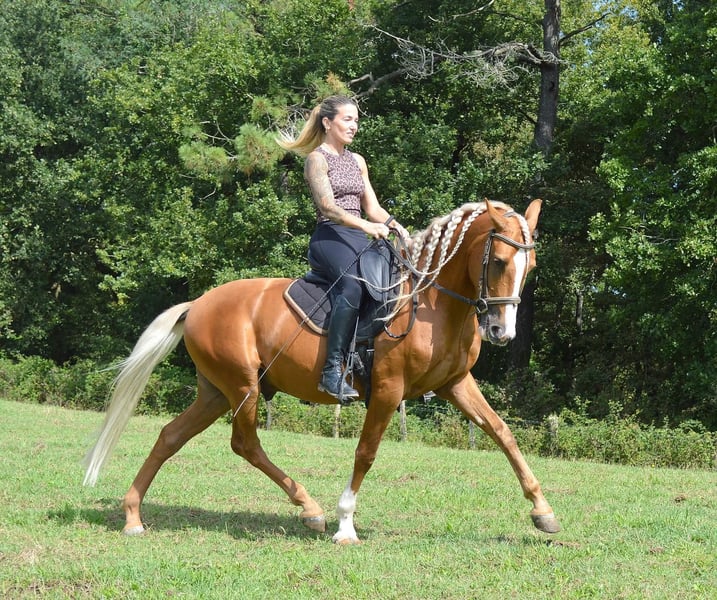Bellissimo castrone Palomino PRE, con ottima andatura sotto il cavaliere.