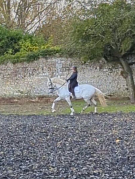 Elegant Grey PRE Gelding – Perfect for Dressage Enthusiasts Discover this stunning grey PRE gelding, born in 2018, standing at 165 cm. With his refined build and graceful movement, he is an ideal partner for dressage training and competitions. Well-mannered and intelligent, he demonstrates a willing attitude and a strong work ethic. He knows : shoulder in, leg yield, half pass, isolated flying changes and he is starting pirouette and bringing flying changes together. Whether you're aiming to compete or enjoy riding at home, this talented gelding offers both elegance and performance. Don't miss the opportunity to own a remarkable dressage prospect and a great friend! more info about him and show record by phone on WhatsApp
