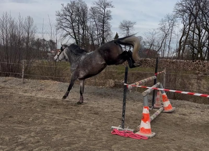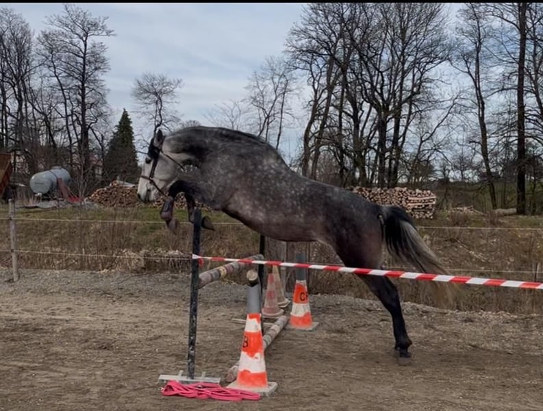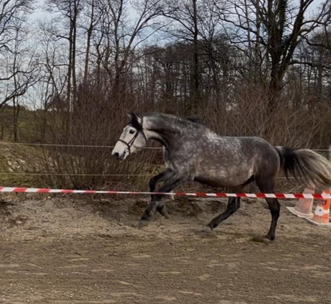 Hübscher 6-jähriger Hengst reiner Spanischer Rasse, barocke Abstammung Zum Verkauf steht dieser wunderschöne barocke Hengst, der zahlreiche positive Eigenschaften mitbringt und das Potenzial hat, Ihr Traumreitpferd zu werden – sei es für Dressurwettbewerbe, als zuverlässiger Begleiter bei Ausritten oder für Freilauf-Show. - in Frankreich geboren und aufgezogen, mit sehr guten Papieren, sein Vater ist regelmäßig in Dressurprüfungen platziert - kastriert im Alter von dreieinhalb Jahren, lebt daher problemlos in einer Herde mit Hengsten, Stuten und Ponys aller Altersklassen; er integriert sich harmonisch, ohne dominant oder unterwürfig zu sein - seit drei Jahren kastriert, somit keine Sorge mehr über Verlust an Kraft in Vorder- und Hinterhand, Fellverlust oder Abbau seiner beeindruckenden barocken Morphologie - groß gewachsener Hengst mit 1,66 m Stockmaß, sehr kräftig, mit gut bemuskelten Gliedmaßen, ausgezeichneter Rückenpartie (quadratischer Körperbau), starke Vorder- und Hinterhand, sehr tragend und kraftvoll, mit viel Raum unter dem Bauch für seitliche Bewegungen - mit wunderschönen, schwungvollen, runden, kraftvollen Gängen - beeindruckender Sprung, berührt niemals eine Stange; das Springtraining wurde ausschließlich im Freilauf durch seine Besitzerin durchgeführt - lebt seit jeher barfuß, wurde nie beschuht, braucht keine Hufeisen und wird auch in Zukunft keines benötigen. Sehr harte, schwarze Hufe mit stabilem Fundament. Auch auf Kies, Erde, Matsch, Wasser oder Sand im Reitplatz fühlt er sich wohl - wurde behutsam körperlich und geistig großgezogen, ab drei Jahren eingeritten, mit vier Jahren begann er mit Ausritten, alleine oder in Gesellschaft; das Training startete erst im Jahr seines fünften Lebens - besitzt drei echte, gute Grundgangarten (beim Trab waren die Galopper im Hintergrund, wenn seine Besitzerin mit ihm Trabritte machte, und im Schritt war er stets weit vorne) - hat eine natürlich gut ausgerichtete Halslinie, arbeitet stets im richtigen Tempo, mit oder ohne äußere Hilfen, an der Longe oder unter dem Reiter, auch in der Freiarbeit - lässt sich sehr gut im Anhänger transportieren (seine Besitzerin fuhr manchmal alleine, um Freunde zu treffen, alles verlief problemlos) - unternimmt alleine oder in Gesellschaft entspannte Ausritte, kann jedoch bei plötzlichem Schreck kurz springen, bleibt aber stets bei seinem Reiter, schaut, überlegt und setzt seinen Weg fort - beim Aufsteigen bewegt er sich kaum, kommt sogar von selbst an die Seite des Reitplatzes, kann sowohl vom Boden aus als auch links und rechts aufgesessen werden - sehr sanfter, sensibler Maul, reagiert fein auf die Hilfen, reicht die Beine nur leicht, um Hüft- oder Schrittdrehungen auszulösen, oder die Gangart zu ändern - sehr lernfähig, intelligent, menschenbezogen, wird eine enge Bindung zum Reiter aufbauen und die Zusammenarbeit mit ihm äußerst angenehm machen, er gibt alles, um Freude zu bereiten - im Grundausbildung bereits solide Grundlagen, vor allem seitliche Bewegungen - unkompliziert und lieb im Umgang, lässt sich problemlos duschen, die Hufe auskratzen, die Mähne pflegen – macht ihm Freude - kann nachts in der Box stehen und tagsüber auf der Weide verbringen, oder ganz auf der Weide mit Unterstand, Wasser und Heu nach Belieben - nie verletzt, mit tierärztlicher Untersuchung gekauft, ohne Röntgenaufnahmen (auf Wunsch können diese auf Kosten des Käufers gemacht werden) - keine Hautprobleme, allerdings sollte er im Sommer vor Insekten geschützt werden, da ihn diese stören können. Er war stets ganztägig auf der Weide mit Fliegenmaske und entsprechender Behandlung, was ihm gut passt - vollständig geimpft, entwurmt, zahnärztlich sowie osteopathisch behandelt - respektiert die Weidezaungrenzen, lässt andere Pferde ein- und auslaufen - kommt bei der Suche auf die Weide problemlos zu uns - bleibt zuverlässig an der Anbindestange, am Pfosten, im Anhänger, ohne zu ziehen - sensibel und feinfühlig, im positiven Sinne, jedoch nicht für einen Amateur geeignet, da er viel Blut und Kraft hat. Er benötigt einen erfahrenen, ruhigen und selbstsicheren Reiter - hat eine vielversprechende Zukunft, solide Grundausbildung (zu Fuß und unter dem Sattel), ausgeglichenes Wesen (er möchte stets sein Bestes geben, versuchen zu verstehen, und ist offen für echte Kommunikation), ohne jegliche Macken, wurde nie frühzeitig gezwungen, hat alle Chancen vor sich - braucht einen echten Reiter, idealerweise mit Erfahrung im Umgang mit iberischen Pferden - bester PRE-Hengst, den seine Besitzerin bisher hatte - Grund für den Verkauf: gesundheitliche Probleme der Besitzerin nach einem Autounfall