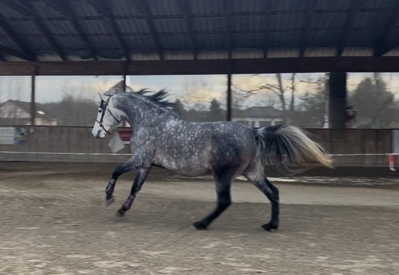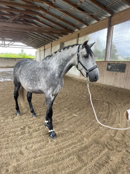 Stunning 6-Year-Old Purebred Andalusian Gelding Available for sale, this magnificent baroque gelding has numerous positive qualities that make him the perfect future mount—whether for dressage competitions, as a trusted partner for hacking, or for liberty displays. - Raised and born in France, with excellent pedigree; his sire is regularly placed in dressage competitions. - Castrated at three and a half years old, allowing him to live harmoniously in a herd with geldings, mares, and ponies of all ages; he finds his place within the group without being dominant or submissive. - Castrated for three years, so you won’t need to worry about loss of power in his front or hind legs, nor about losing his flowing mane or his magnificent baroque physique. - Of substantial size, standing approximately 16.1 hh at the withers, with great strength, well-boned limbs, and an excellent, square build; very strong front and hind legs, making him a powerful and carrying horse with ample room underneath the belly for lateral movements. - Exhibits magnificent, elevated, rounded gaits with a lot of bounce and power. - Has an impressive jumping ability; he never touches a rail. His jumping work has been done only in free jumping by his owner. - Has always been barefoot, never shod, and has never needed shoes; he has very tough, good-quality black hooves with excellent conformation. Equally comfortable on rocks, dirt, mud, water, or sand in the arena. - Given time to grow physically and mentally; backed at 3.5 years old, he began hacking and trotting at 4, alone or with company. Work only started when he was around 5. - Possesses three genuine, good gaits (his trotting is often faster than the gallop of riding horses behind him during trotting sessions with his owner, and even at the walk, he is always ahead). - Has a naturally well-aligned neck; he consistently works in the correct outline, whether ridden or lunged, with or without external aids, and also in liberty. - Travels very well in a trailer, whether alone or with company; his owner sometimes transported him alone to meet friends with no issues. - Enjoys hacking alone or with others; may startle if surprised but will never attempt to unseat his rider or run away. He will look, think, and then continue. - Stays still when mounted; he even approaches the mounting block on his own and can be mounted from the ground, both from the left and right sides. - Has a very gentle mouth; sensitive to the rider’s aids, and just a light touch with the legs is enough to influence his hindquarters or change gait. - Learns quickly, is very intelligent, and has a close bond with humans; he will be very cooperative and eager to please, making the relationship even more rewarding. - Has a solid foundation in basic dressage, especially lateral movements. - Easy to care for and very affectionate; he allows all grooming routines, including full baths, hoof care, mane and tail brushing, and enjoys it. - Can live partly in a box at night and be turned out during the day, or be kept entirely on pasture with a shelter, water, and hay available at all times. - Never injured; purchased with a veterinary check-up but without radiographs (none were deemed necessary by his owner, but radiographs can be provided upon request at your expense). - No skin issues; however, insect protection is recommended in summer to prevent irritation. He was kept on pasture 24/7 during summer with only a fly mask and was treated for pests, which suited him perfectly. - Fully up-to-date on vaccinations, deworming, dental care, osteopathy, etc. - Respects fences perfectly, with free movement of other horses nearby. - Comes easily when called from the pasture. - Ties well to a post or trailer, without pulling or fussing. A sensitive and refined horse, with good bloodlines and strength, he is not suitable for an amateur rider. He requires an experienced, calm, and confident rider. He has a very bright future ahead, with a solid groundwork foundation (both on foot and mounted), excellent mental attitude—always eager to learn and understand—and no vices. He has not been forced or rushed in his training and has all the potential for a great career. Ideal for a rider with experience in Iberian breeds, as he benefits from familiarity with similar types. This is the best PRE (Pure Spanish Horse) that his owner has ever had. Reason for sale: owner’s injury following a car accident.