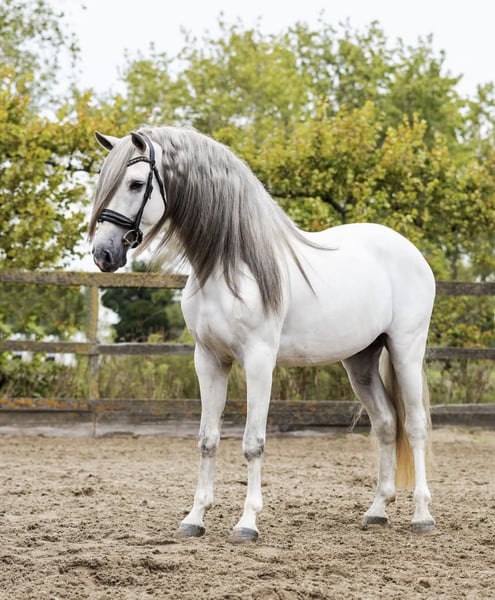 FEEL. THIS COULD BE THE ONE. – HIGH-LEVEL SCHOOLMASTER IBERIAN GLORY A fairy-tale grey with a long, flowing mane and tail. St. George – trained to high level 7-year-old PRE grey gelding 16.1 hh – impressive and perfectly proportioned Full ANCCE registration papers Trained to St. George level Lateral movements in all gaits Expressive passage and Spanish walk Show experience Perfect match for riders who want more than just riding – they want to perform. FROM MORFOLOGIA NUMBER 1 TO YOUR NUMBER 1. He was not awarded the top spot in Morfología for nothing – crowned as the most beautiful stallion. The kind of horse that makes you feel. Whether for shows, beach rides, alone or in a group. Load- and farrier-friendly. This horse combines proven PRE bloodlines from the Principal section, renowned for their type, rideability, and expression across generations. A blend of classical beauty, solid genetics, and functional conformation, lines that have proven themselves in both sport and classical riding. A pedigree that impresses not only on paper but also reflects in the horse itself. A foundation that promises quality – today and in the future. Due to his sensitivity, this horse is only entrusted to experienced riders who work with finesse and subtle aids. Piro free. Extensive radiograph set available. Location: Near Frankfurt And perhaps exactly the one you’ve been waiting for. Ready to ride with a prince? Videos, more information, and personal introduction available at any time.