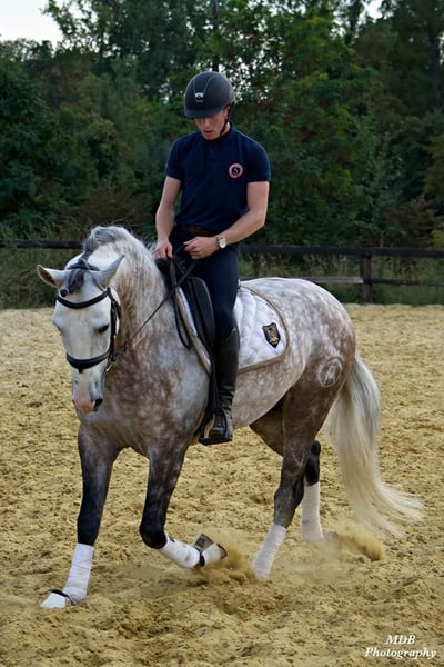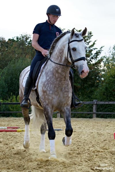 Toller, barocker PRE Wallach für die ganze Familie.. Er ist ein karakterstarkes Pferd mit viel Sensibilität und Power. Ob Dressur, Springen, Ausreiten oder einfach Bodenarbeit, er ist immer bei allem 100% dabei. Er kennt alle wichtigen Dressurlektionen. Piaffe, Passage und spanischer Schritt ist selbstverständlich. Er ist sehr Menschen bezogen sucht sich aber seinen Menschen aus. Im Winter hat er etwas Mühe mit unserer Luft, was manchmal zu Bindehautentzündung an den Augen führen kann. Mit Tränenersatztropfen oder mal Schwarztee auswaschen hat man das gut im Griff. Er ist verladefrom und hufschmiede tauglich. Er braucht ganz klar eine sichere und klar auftretende Besitzerin/Betreuung. Bis 2 Jahre alt war er Hengst. Da die Mutter nicht gekört wurde. Die Eltern sind beide PRE.