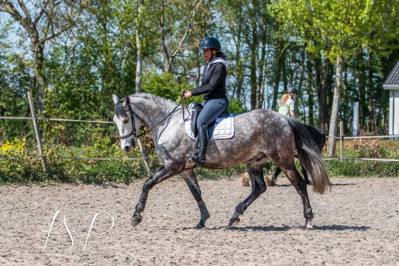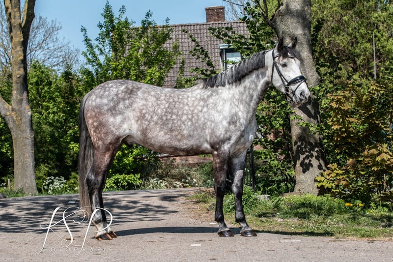 For sale: 6-year-old PRE gelding with a passport, approximately 1.67 meters tall. He arrived in the Netherlands as a foal and has always been handled in hand. Bolero is a calm and well-behaved horse, but also sensitive. Therefore, I am looking for someone who trains him in a friendly and respectful manner. He is nicely mannersed on the ground, but consistency is key. He is familiar with groundwork, liberty dressage, and also enjoys jumping — he appreciates variety in his training. Under saddle, Bolero is obedient and willing to work. He is sensitive and needs clear communication, so he is not suitable for beginners. Currently, Bolero is kept outside 24/7 with a shelter, which suits him very well. He needs a stable where he can spend at least part of the day outside. He is easy to trim and has never been shod. He has been vaccinated. In 2024, Bolero underwent a full veterinary check, including legs, neck, and back. I am looking for a loving, five-star home for Bolero with an owner who can offer him plenty of variety and who interacts with horses in a gentle and respectful way.