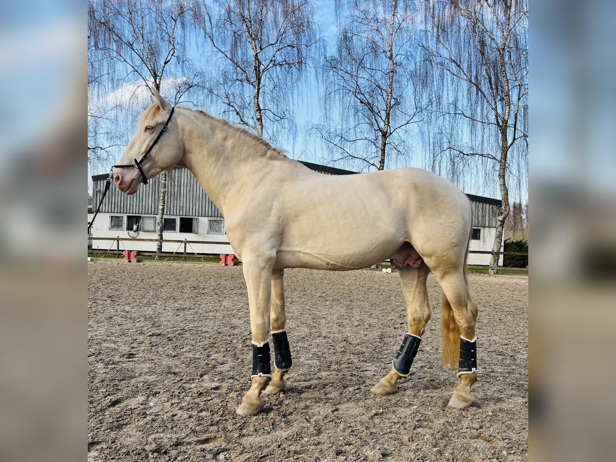 This excellent Cremelo Pearl stallion, purebred PRE, is a real eye-catcher with double cream gene, a rarity for breeding!! To lighten dark colors. He is very well rideable and fantastic to handle. For questions, please call ☎️ 01722420434.