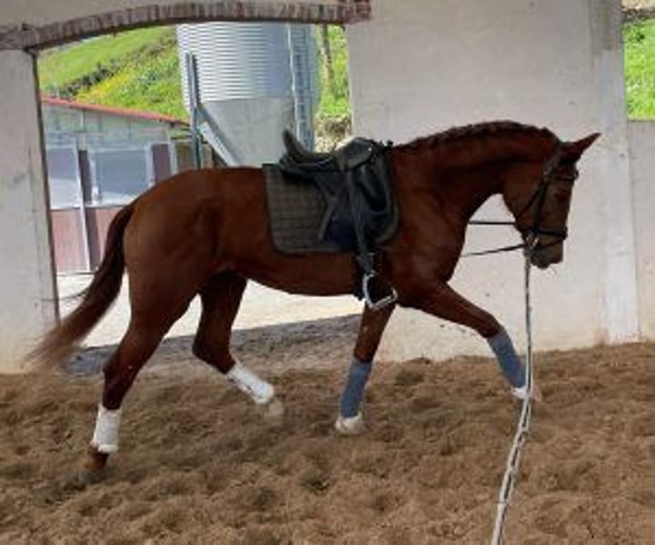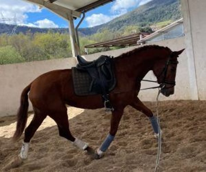 Alazana muy bella con potencial para competir en doma clásica Este encantador potro alazán tiene cualidades excepcionales para competir en doma clásica. Es raro encontrar un caballo español con movimientos tan espectaculares como los de este joven caballo. Su propietario lo descubrió cuando sólo tenía 2 años y decidió dejarlo crecer en libertad con otros potros, lo que le permitió desarrollarse en un entorno natural y sano. Sin embargo, debido a nuevas responsabilidades profesionales, ya no puede dedicarle el tiempo necesario y ha tomado la difícil decisión de venderlo. Se trata de una excelente oportunidad si busca un caballo joven para entrenarlo a su manera y brillar en competición. El caballo tiene un buen bajo a tres pasos y va al aire libre. IberHorse.com: Ponemos en contacto a jinetes con caballos excepcionales. Si este potro alazán con impresionantes aptitudes para la doma ha captado su interés y se imagina desarrollando su potencial, no dude en ponerse en contacto con nosotros. Estamos aquí para ayudarle a encontrar el caballo perfecto para sus necesidades y aspiraciones. Este potro podría ser el compañero ideal que está buscando para iniciar una apasionante aventura en el mundo de la doma clásica.