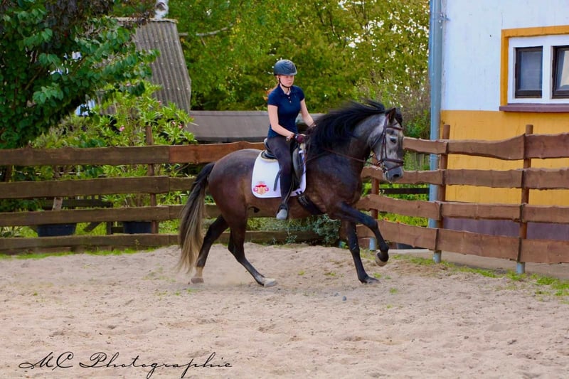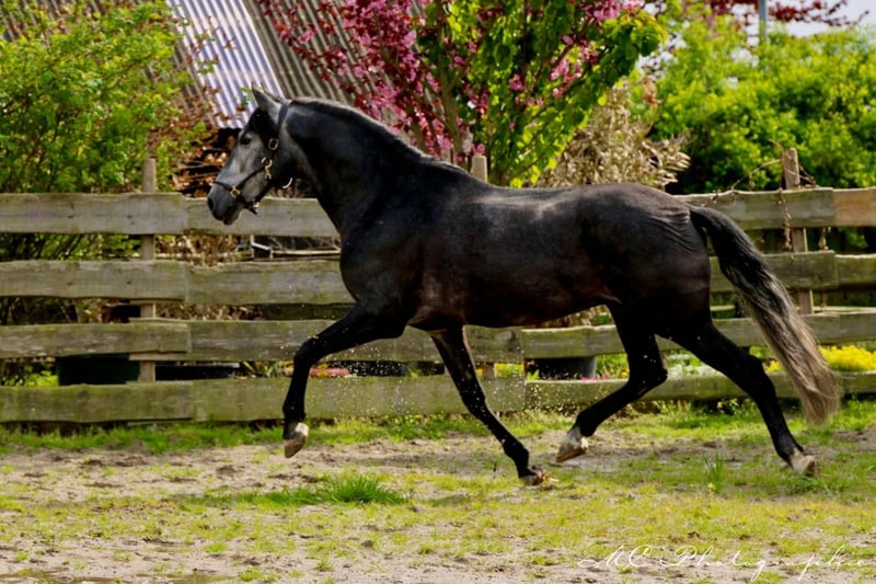 **Sales Advertisement: PRE Gelding for Sale** For sale is a beautiful PRE gelding, born in 2019. With an impressive height of 170 cm and his elegant dark gray coat, he is a real eye-catcher. This talented gelding is excellent for dressage and is already showing promising progress in his training. He is well-mannered, ridden according to his age, and has a pleasant temperament that is suitable for both experienced riders and ambitious beginners. Our PRE gelding is not only a sporty horse but also a loyal partner who brings a lot of joy and variety to the riding routine. He was born here, and both parents can be viewed. If you are interested or would like more information, we look forward to your message! Viewings are possible at any time by appointment.