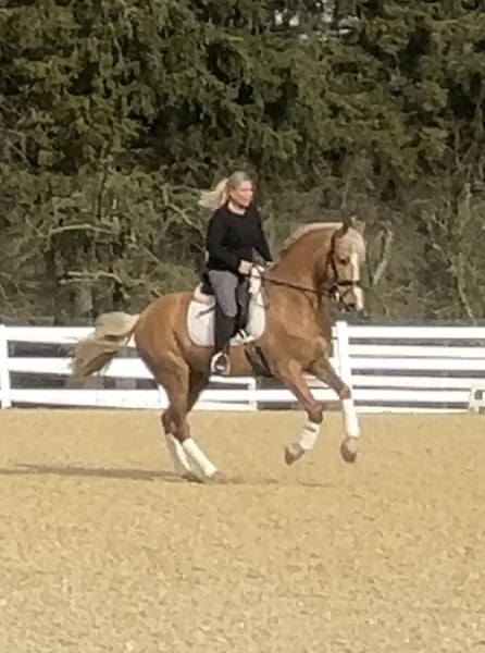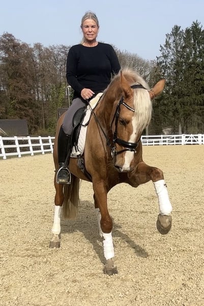 Siroco is very people-oriented, affectionate, curious, open-minded, and always well-behaved. Under saddle, he is very comfortable to sit on, displays nice basic gaits, and is consistently motivated. He is turned out daily in the pasture, and is accustomed to being tied, hosed off, using the solarium, traveling in the trailer, lunging, and working in the indoor arena, outdoor riding arena, and on trails. Training level L/M – lateral movements at trot and canter are secure, and flying changes are in training. A pre-purchase examination including X-rays (all negative) is available. A viewing can be scheduled at any time; weekdays from 12 noon are also possible.