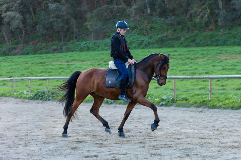 PRE linia sportowa Kastrat 1,70 cm Pracuje w ujeżdżeniu Bardzo przyzwyczajony do ringu i do wyjazdów w teren Nie boi się Doskonały charakter, bardzo szlachetny i czuły Idealny dla młodzieży i dorosłych
