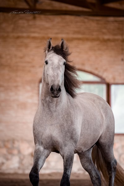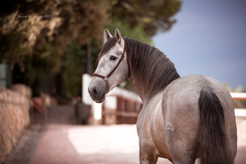 MACATERO DE CRIS ist ein großrahmiger barocker PRE-Wallach. Er ist mit seinen bereits 1,75 m ein stattlicher Mann und wächst noch etwas. Er hat wunderbrare Bewegungen und ist sehr gut für die Barockdressur geeignet. So groß wie er ist, so ein großes Herz hat er auch! Verschmust und anhänglich! Immer aufmerksam. Er ist in der klassischen Dressur angeritten. AKU, Röntgenbilder, Zahnbehandlung und Hufbehandlung inkl. Mehr Informationen via +49 171 528 48 65