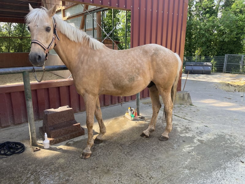 Schweren Herzens verkaufe ich meinen 9 jährigen Andalusier Mix. Ich besitze ihn seit 3 Jahren, aber da er mich mit seiner Grösse nicht gut abdeckt und kein Gewichtsträger ist, bin ich auf der Suche nach was Grösserem. Ich habe Sunshine selber freizeitmässig mit westernsattel ausgebildet, er ist aber ein absolutes Freizeitpferd. Im Gelände ist er sehr zuverlässig. Sunshine hat einen extrem starken Charakter und braucht Grenzen, er liebt Freiarbekt und Kraulen. Sunshine mag Kinder, allerdings kann er auch mal temperamentvoll sein und braucht eben Grenzen, daher ist er kein reines Kinderpferd. Sunshine hat ein Sommerekzem, was aber gut pflegbar ist, er kratzt sich die Mähne ab, hat aber keine offenen Wunden. Mit dem Bauch hat er manchmal Probleme, der ist gebläht ab und an. Ansonsten hustet er im Herbst und Frühjahr, habe es aber in der Klinik abklären lassen. Ich wünsche mir für Sunshine ein liebevolles Heim, indem er umsorgt wird. Zur Verfügung stellen ist auch eine Option.