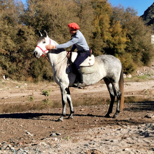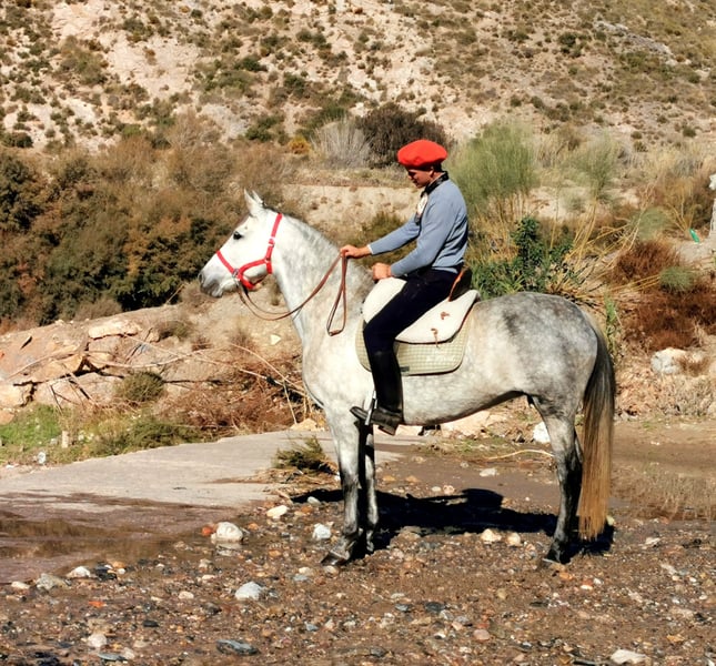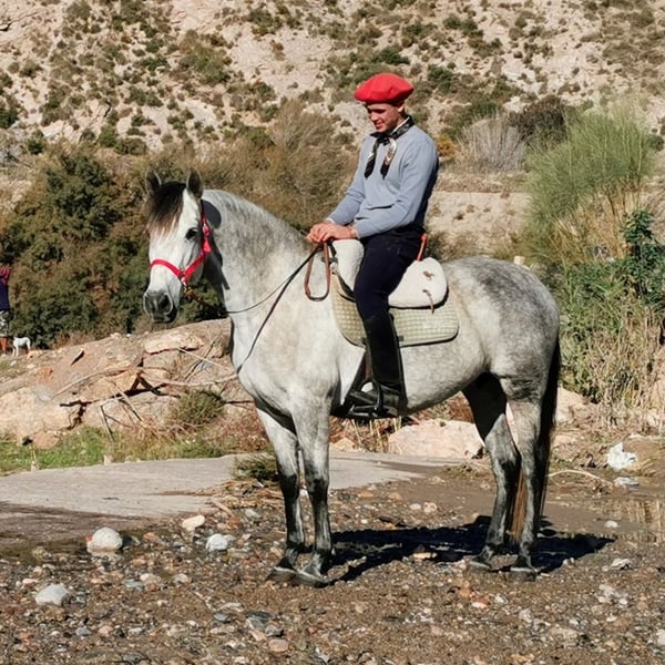 Centella is a licensed PRE mare with a lot of presence, a gentle nature, and a balanced temperament. She is a mare that immediately impresses with her charisma and pleasant demeanor. She has already foaled twice and comes from a small breeding operation that was discontinued due to age reasons. We have gently and patiently backed Centella, and she has been under saddle for about a year. She consistently proves to be very well-behaved, attentive, and uncomplicated. Thanks to her agreeable temperament, she is also suitable for less experienced riders. In the field, she is calm and reliable, providing her rider with a sense of security at all times. Centella is accustomed to herd life and currently shares a paddock with other mares. She is friendly and very pleasant in daily handling. Videos and more information available upon request, also via WhatsApp.