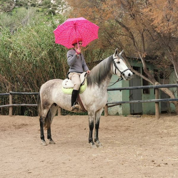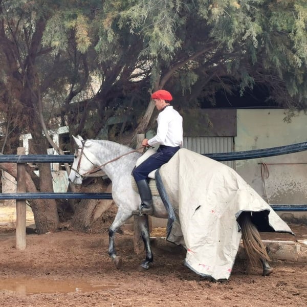 Centella ist eine gekörte PRE-Stute mit viel Ausdruck, einem liebevollen Wesen und einem ausgeglichenen Charakter. Eine Stute, die sofort durch ihre Ausstrahlung und ihre angenehme Art begeistert. Sie hatte bereits zwei Fohlen und stammt aus einer kleinen Zucht, die aus Altersgründen aufgegeben wurde. Bei uns wurde Centella behutsam und mit viel Geduld eingeritten und ist seit etwa einem Jahr unter dem Sattel. Sie zeigt sich dabei sehr brav, aufmerksam und unkompliziert. Durch ihr angenehmes Temperament ist sie auch für Reiter mit weniger Erfahrung gut geeignet. Im Gelände ist sie nervenstark und zuverlässig, sodass sie ihrem Reiter jederzeit ein sicheres Gefühl gibt. Centella ist den Herdenverband gewohnt und steht bei uns zusammen mit anderen Stuten im Paddock. Sie ist freundlich und im täglichen Umgang sehr angenehm. Videos und mehr Information auf Anfrage, gerne auch per WhatsApp