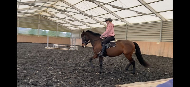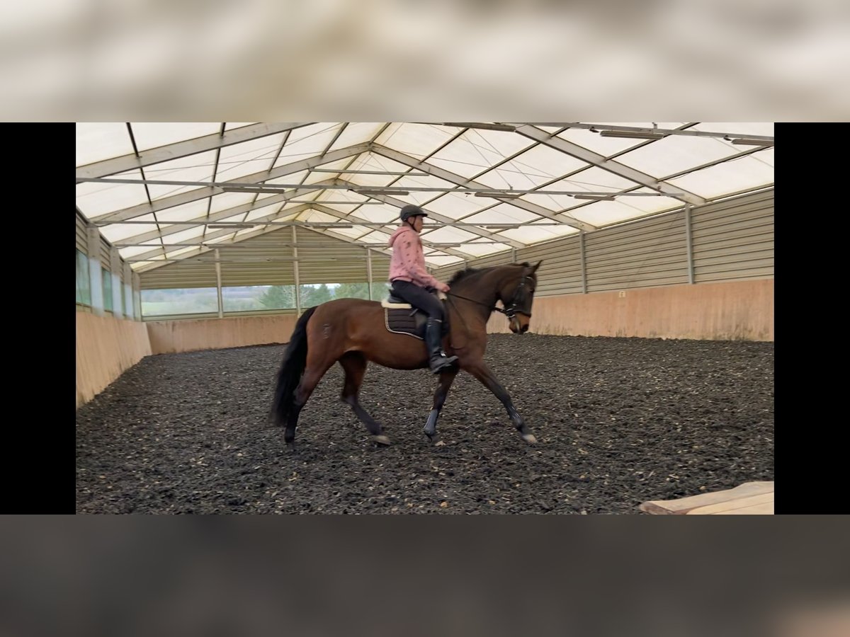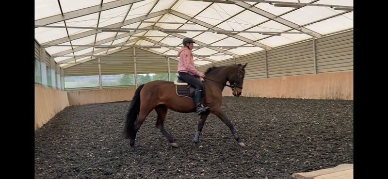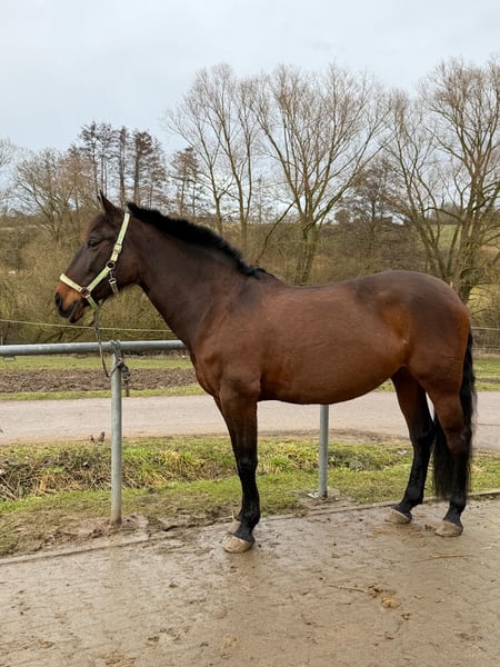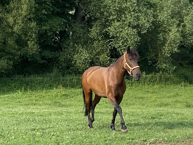 Wunderschöne braune P.R.E. Stute, 11 Jahre, 1,57 m, ohne Abzeichen. Läuft barhuf, hatte aber auch schon vorne Eisen im letzten Sommer. Sie ist fein zu reiten, angenehm an den Hilfen. Dabei zeigt sie sich umweltorientiert und hochsensibel, bleibt jedoch händelbar, auch bei der Bodenarbeit. Im Umgang ist sie ein Schatz: Sie lässt sich überall anfassen, ist lieb im täglichen Handling und stets freundlich. Beim Schmied sowie beim Tierarzt verhält sie sich vorbildlich. Sie war, seit sie bei mir ist, noch nie krank. Sie hat sehr gute Hufe und wird regelmäßig osteopathisch durchgecheckt. Auch im Gelände ist sie reitbar und macht Freude. Wir waren zu zweit und auch alleine schon draußen, Runden erweiternd. Ob sie schon Fohlen hatte, ist nicht bekannt. Sie ist seit 3 Jahren in Deutschland, bisher ekzemfrei. Eine tolle Stute für Reiter, die eine ehrliche und brave Freizeitpartnerin suchen. Freuen würde ich mich über spaniererfahrene Menschen, oder jene, die auch in komischen Situationen die Ruhe bewahren.
