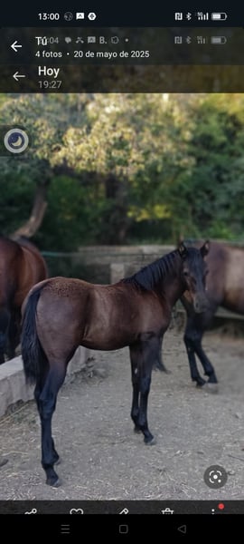 *Preciosa yegua Doma Vaquera, Año de nacimiento 2015, capa negra* Se presenta una preciosa yegua de doma vaquera, nacida en 2015, que combina elegancia y carácter en perfecta armonía. De color negro en invierno y castaño oscuro por el sol del verano, esta yegua ha sido criada y entrenada con cuidado, demostrando una excelente disposición para la cría. Criada en libertad dando potros con el semental castaño de la foto(actualmente preñada de 9meses), nieto de Ermitaño III (reproductor PRE de élite), ideal tanto para cría de potros espectaculares y monta de jinetes experimentados. Línea fina, delicada y armoniosa, yegua PRE con auténtica clase, que no se ven. Una oportunidad única para quienes buscan una yegua confiable, bien formada y con un potencial destacado en la cría. Para más información o para concertar una visita y verla junto a su potro, no dudes en contactarnos. ---