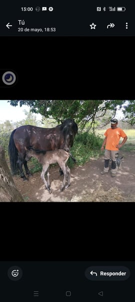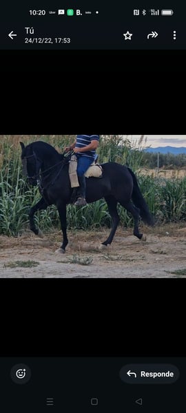 --- **Yegua domada vaquera, nacida en 2015, capa negra** Se ofrece en venta una hermosa yegua de doma vaquera, nacida en 2015, que destaca por su finura, elegancia y clase. De color negro intenso en invierno y castaño oscuro por el Sol del verano, esta yegua ha sido criada en libertad con cuidado, mostrando excelentes aptitud para la cría. Perfecta para jinetes con algo de experiencia que quieran disfrutar de una yegua muy cariñosa y delicada, con buena respuesta y un aspecto impresionante. No dudes en contactarnos para más información y concertar una visita, puedes verla con su potro y con el semental con el que vive en libertad, nieto de Ermitaño III (reproductor de élite), del que está preñada de 9 meses en la actualidad. Se vende junto con su próximo potro.