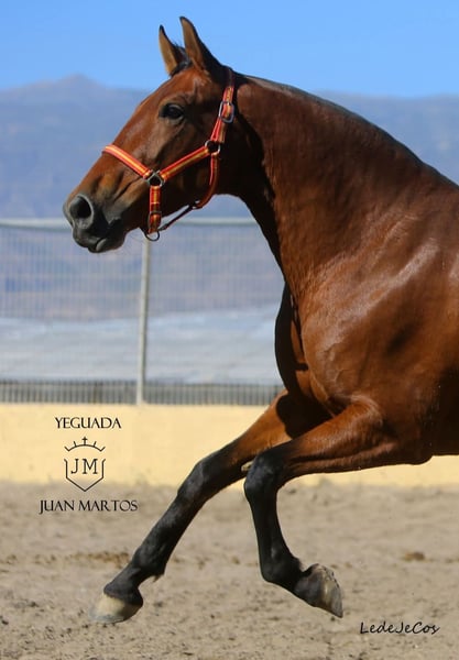 Lermosa MAZ, like Silueta MAZ, comes from the breeding of the renowned PRE breeder Juan Martos. She was born in Spain on February 10, 2014. With her height of 164 cm, she has an optimal size and is a baroque mare, featuring a strong neck and a very expressive appearance. She has an excellent pedigree; on her father's side, she has Yegada Militar lineage, and on her mother's side, she has Escalera lineage. Lermosa is exceptionally well graded with a score of 106.90 at ANCCE, which speaks highly of her quality. She has been backed but needs to be refreshed. She is a very good broodmare. Lermosa is in foal to Oreon Maz for spring 2026. She is well-behaved for the farrier and loading. Sire: Sinapsis, Dam Sire: Peluso VI