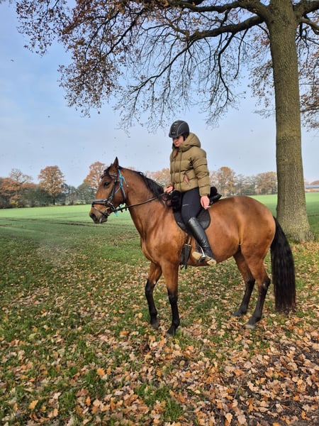 Na enige overweging heb ik met pijn in het hart besloten om onze merrie te herplaatsen. De reden daarvoor is dat zij helaas niet het juiste paard is voor ons gezin. Ze heeft tijd nodig om te wennen, bij voorkeur in een open stal. Ze houdt van grondwerk en doet dat erg goed; ze heeft tijd nodig om vertrouwen op te bouwen. Ze is zeer gevoelig en woont sinds vier jaar in Duitsland. Ze heeft een ervaren en zelfverzekerde ruiter nodig, dan laat ze zich probleemloos berijden. Helaas niet geschikt voor mijn 8-jarige dochter. In het terrein gaat ze liever samen met een tweede paard. Ze reageert gevoelig op de benen en de ruiter moet haar veiligheid bieden. Ze kent honden en kinderen en laat zich goed door kinderen leiden. Wij wensen haar een goed thuis, waar ze de juiste begeleiding kan krijgen, maar daarvoor missen wij de ervaring. Ze wordt geleverd met een zadel, bit, halster en een zweetdeken. Bij serieuze interesse hoor ik graag. Ze is geen beginnerspaard, omdat ze in sommige situaties wat schrikachtig is en behoefte heeft aan vertrouwen.