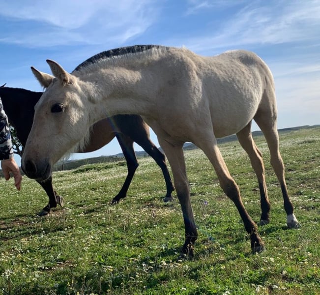 Se vende potra PRE baya con e pequeña y con 10 meses. Tiene orígenes Paco Marti y Viñuela. Desciende de caballos como Boni Indalo de la yeguada Viñuela y el reconocido mejorante Obcecado. Potra de alto nivel con una gran morfología, alzada y movimientos, para personas que estén buscando calidad dentro de las capas diluidas.